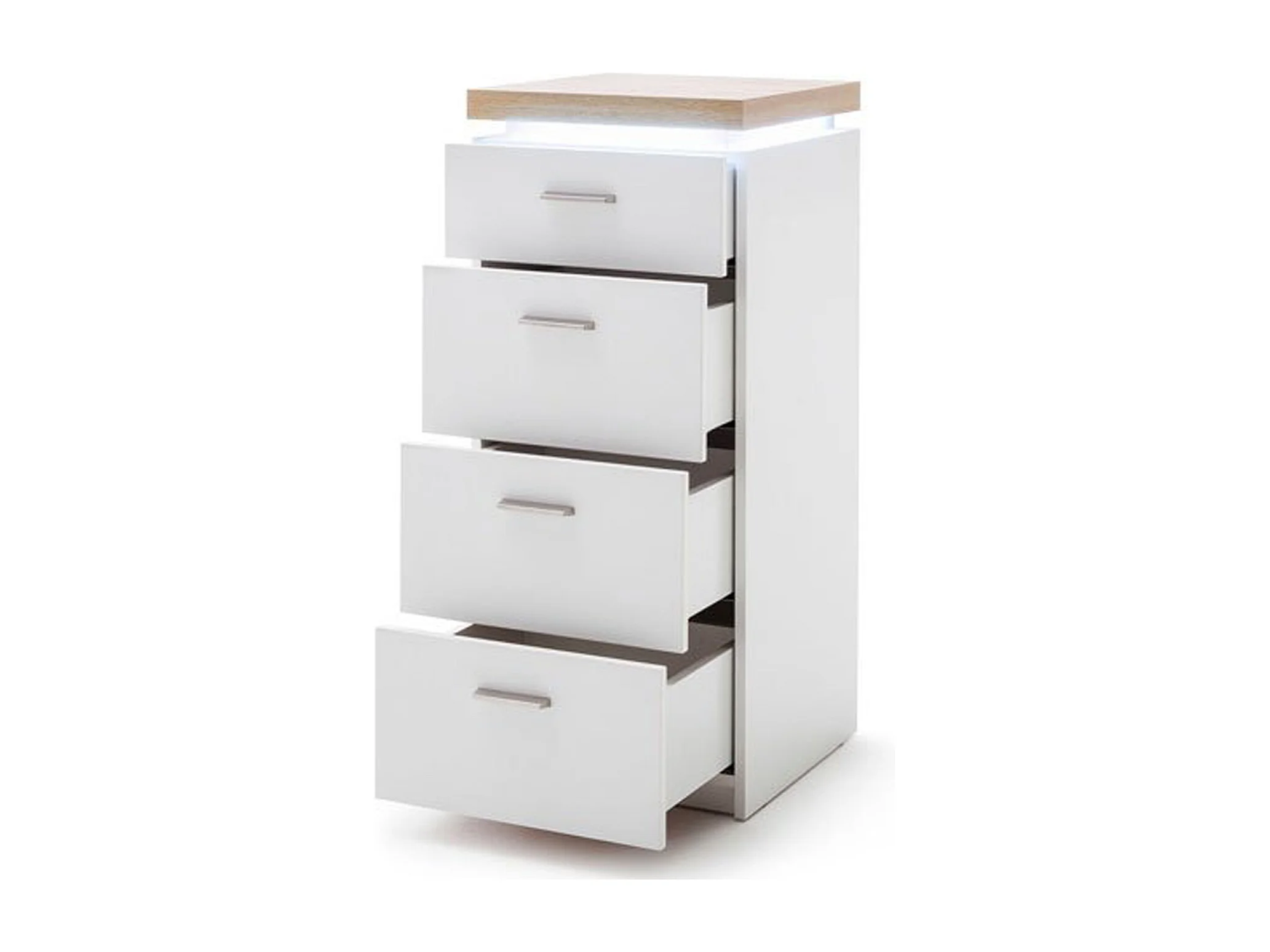 Commode de rangement coloris blanc /chêne + LED - Longueur 42 x Hauteur 98 x Profondeur 44 cm