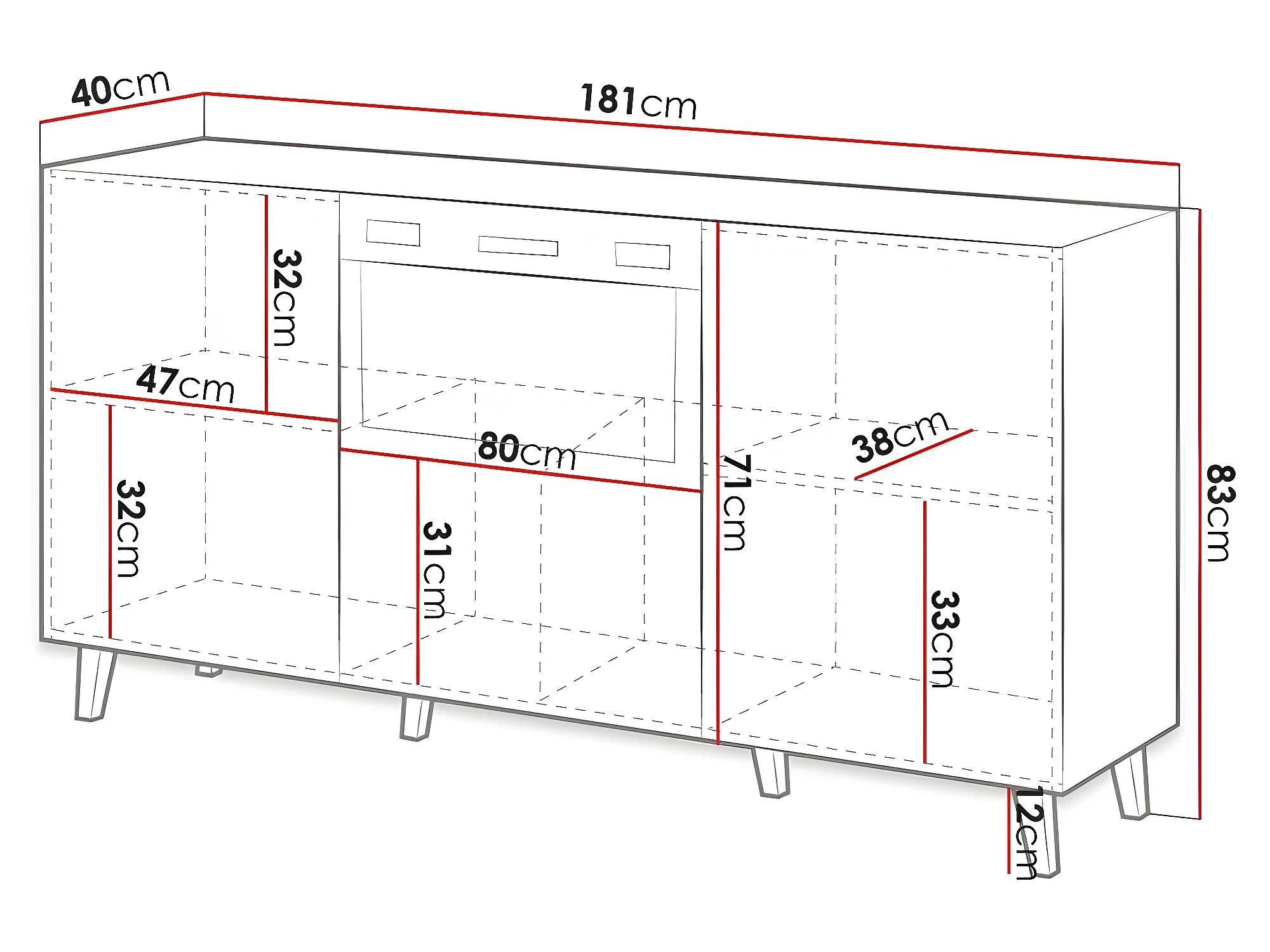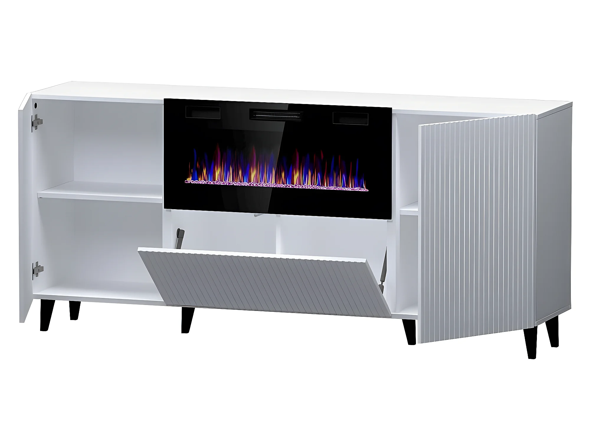 Commode de rangement Meuble Blanc Avec Cheminée chauffante 180x83x40cm PALACE sur pieds