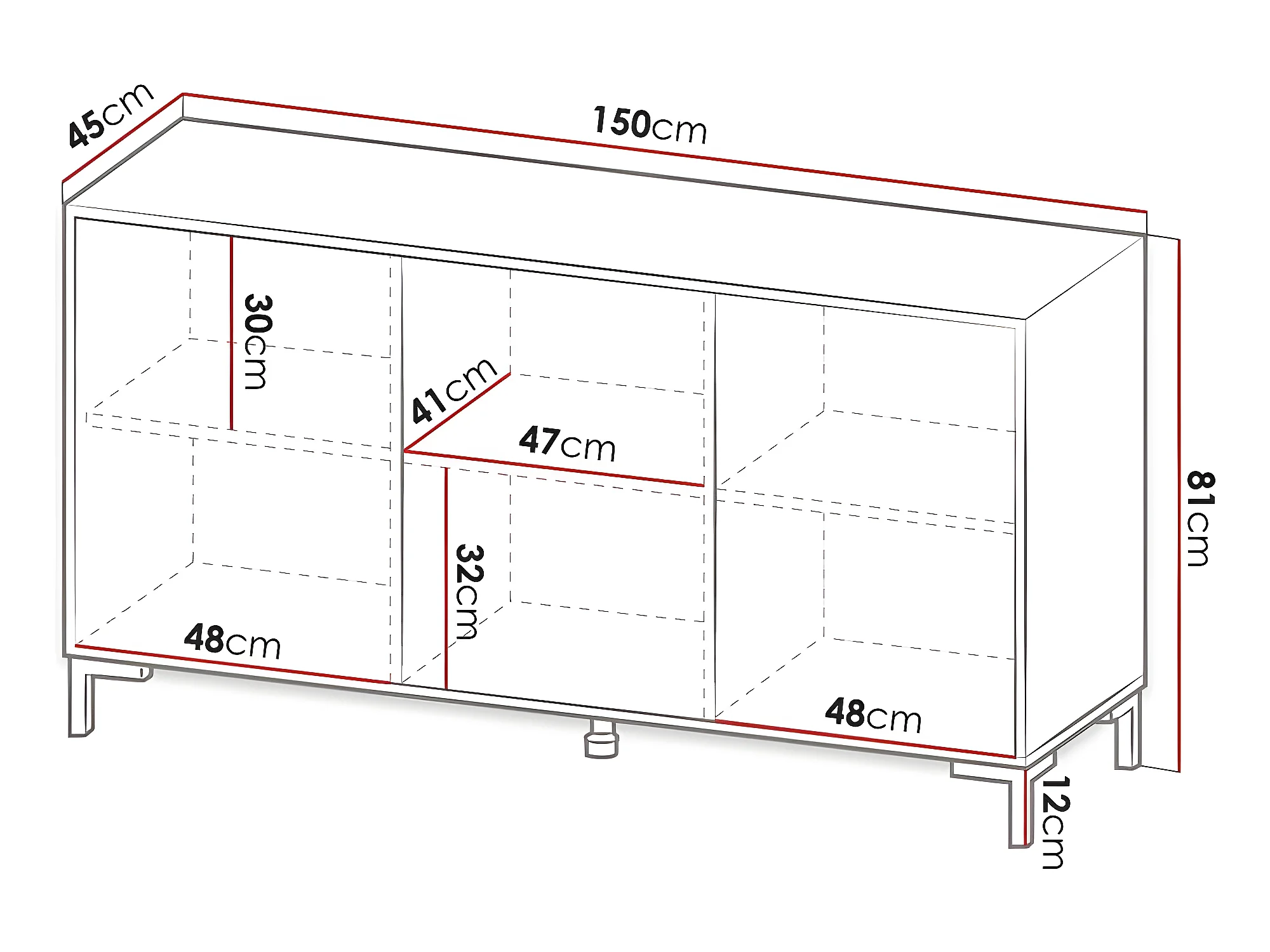 Commode de rangement Meuble universel Blanc 150x81x45cm PALACE sur pieds