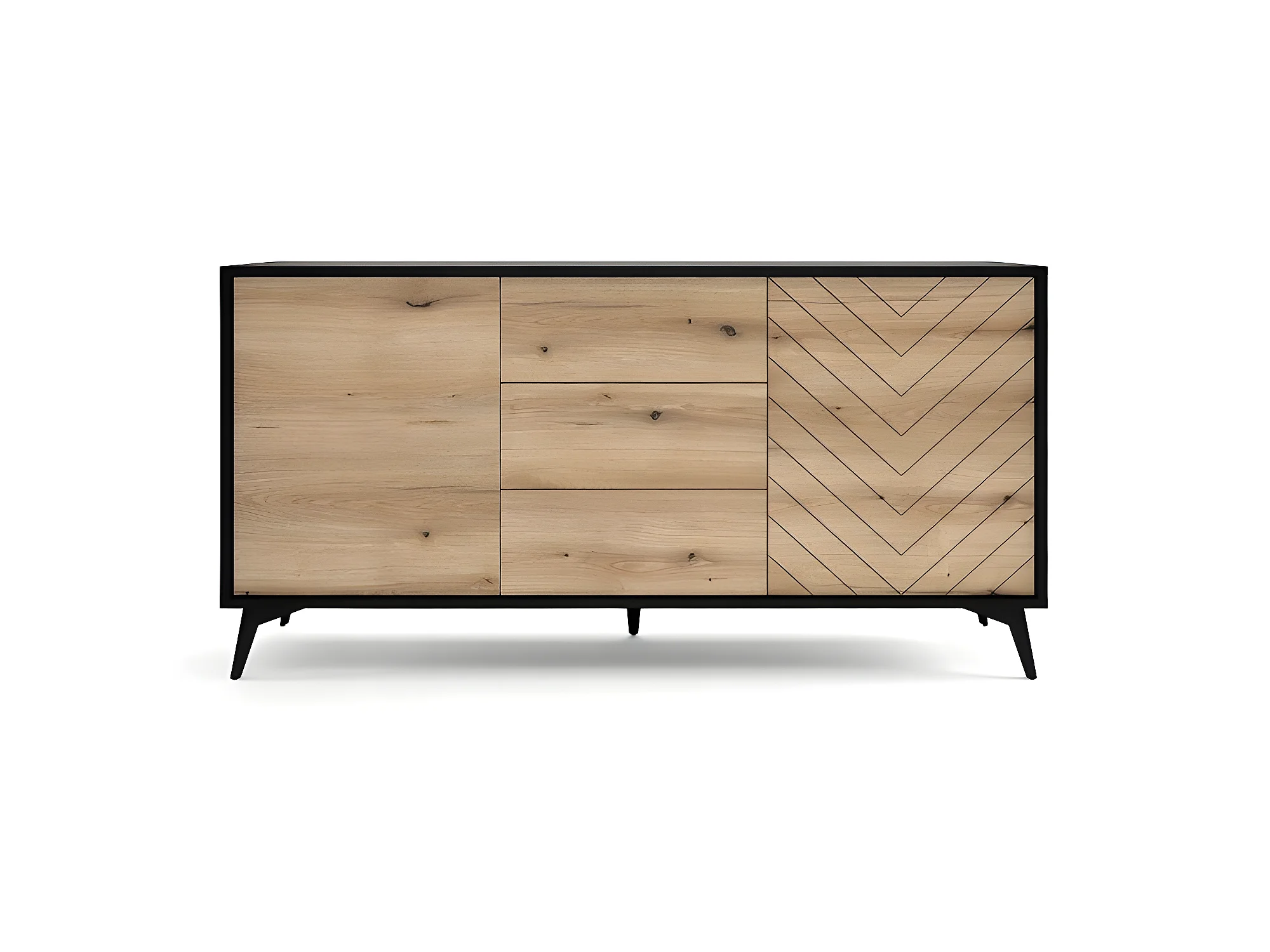 Commode de rangement Meuble universel évoque chêne/noir 154x77x39cm DIAMANT KSZ154 sur pieds