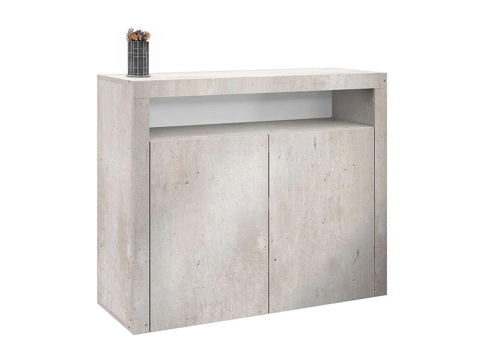Commode Denver, Buffet avec 2 portes et 1 compartiment ouvert, aspect béton oxyde (107 x 88 x 35 cm)