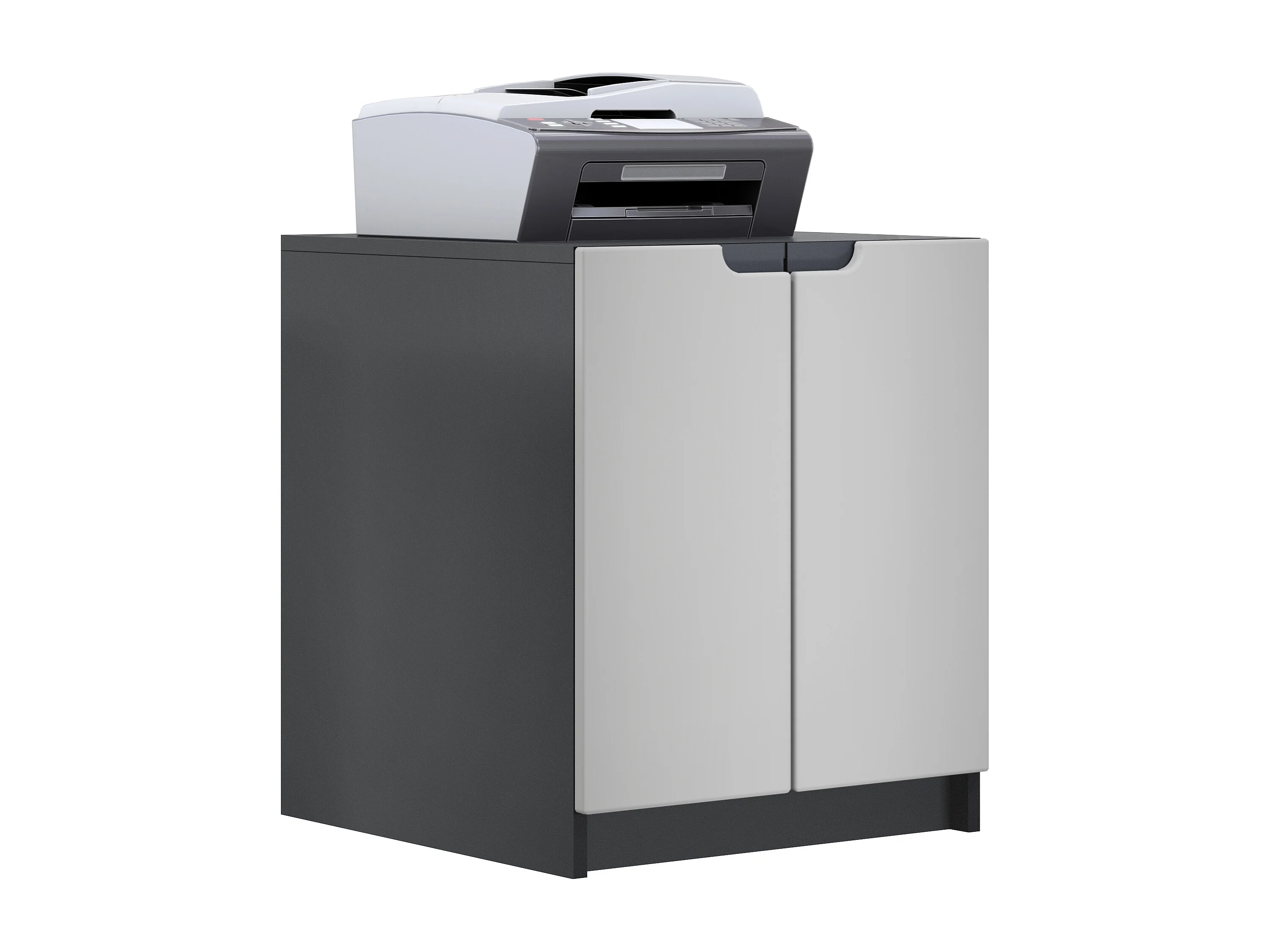 commode d'imprimante Logan, armoire à dossiers avec 2 compartiments et 2 portes, corps noir mat, façades gris clair satiné mat, (51 x 60,5 x 54 cm)