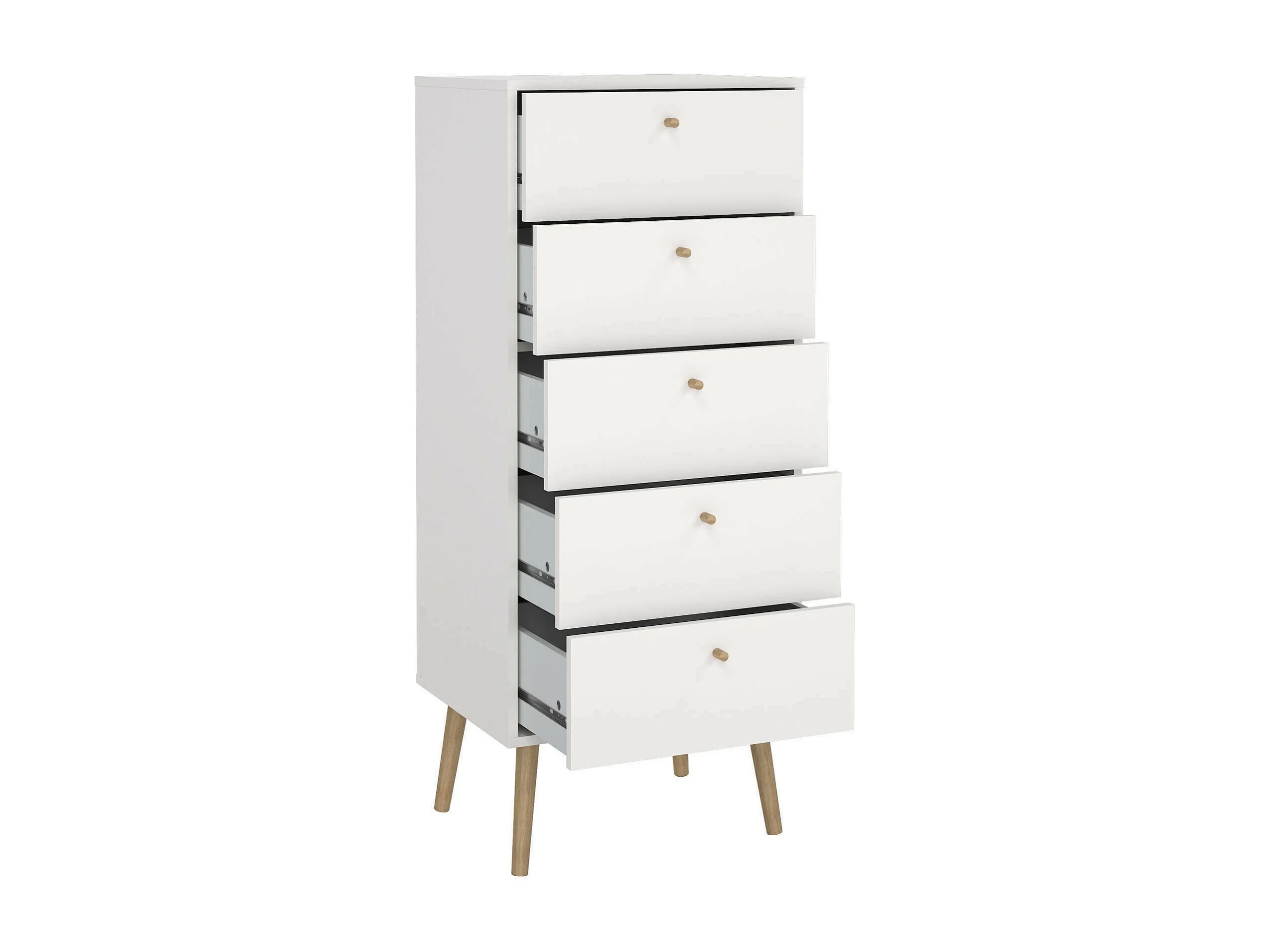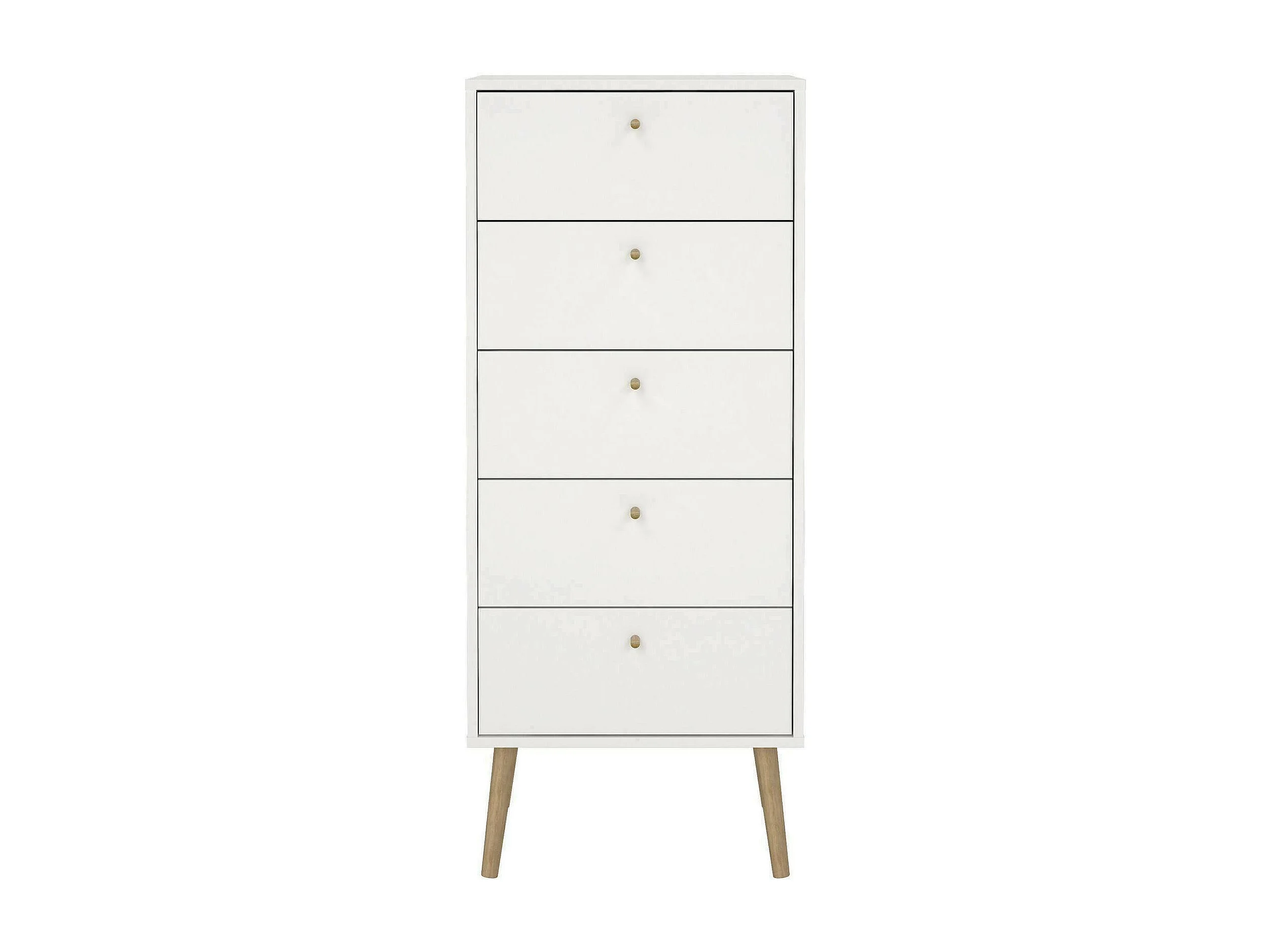 Commode Irving, commode 5 tiroirs, commode pour la chambre, commode moderne, 61x40h118 cm, blanc
