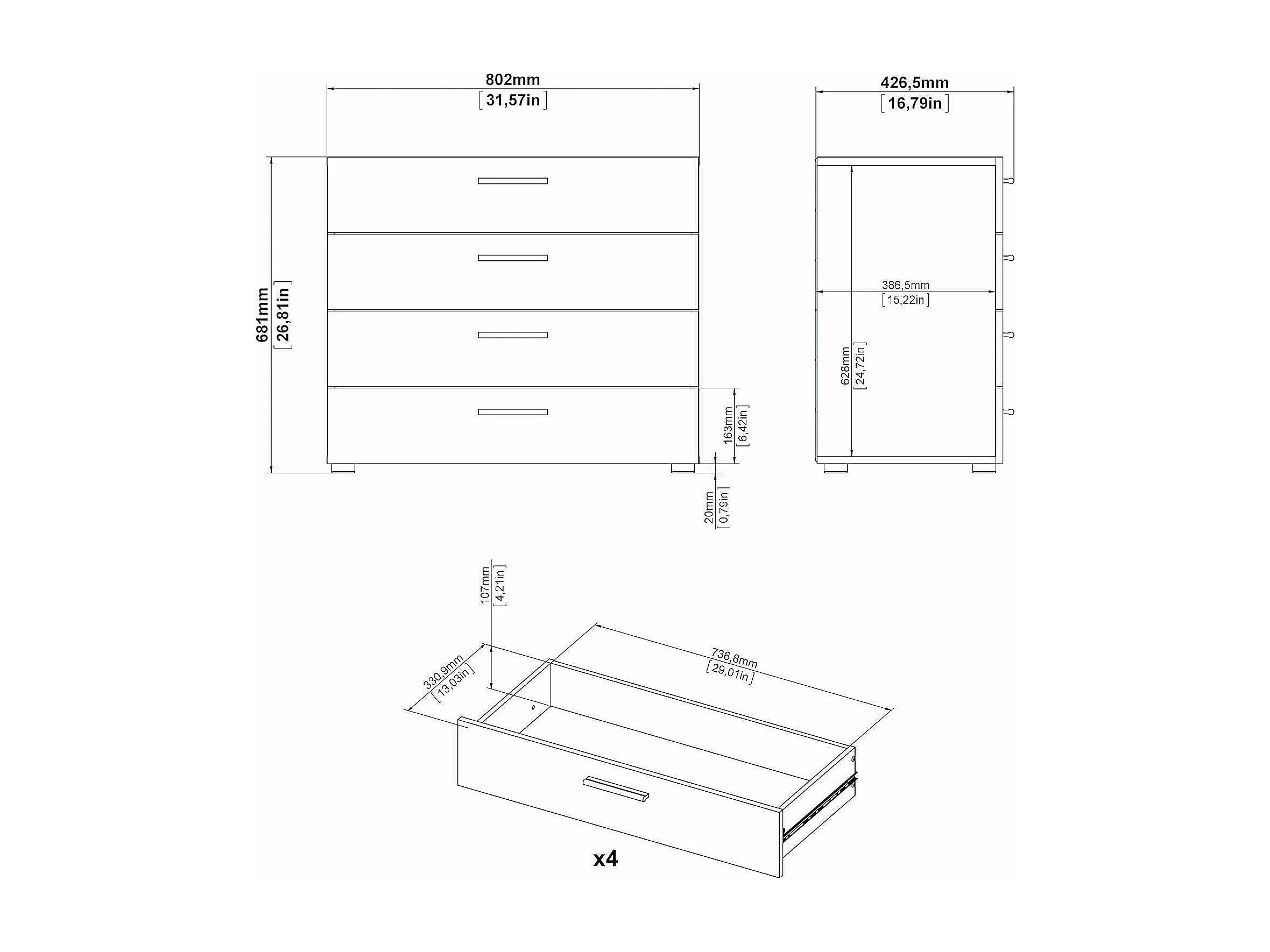 Commode Droff, Commode polyvalente, Commode de chambre, Meuble avec tiroirs, 80x40 h68 cm, Blanc