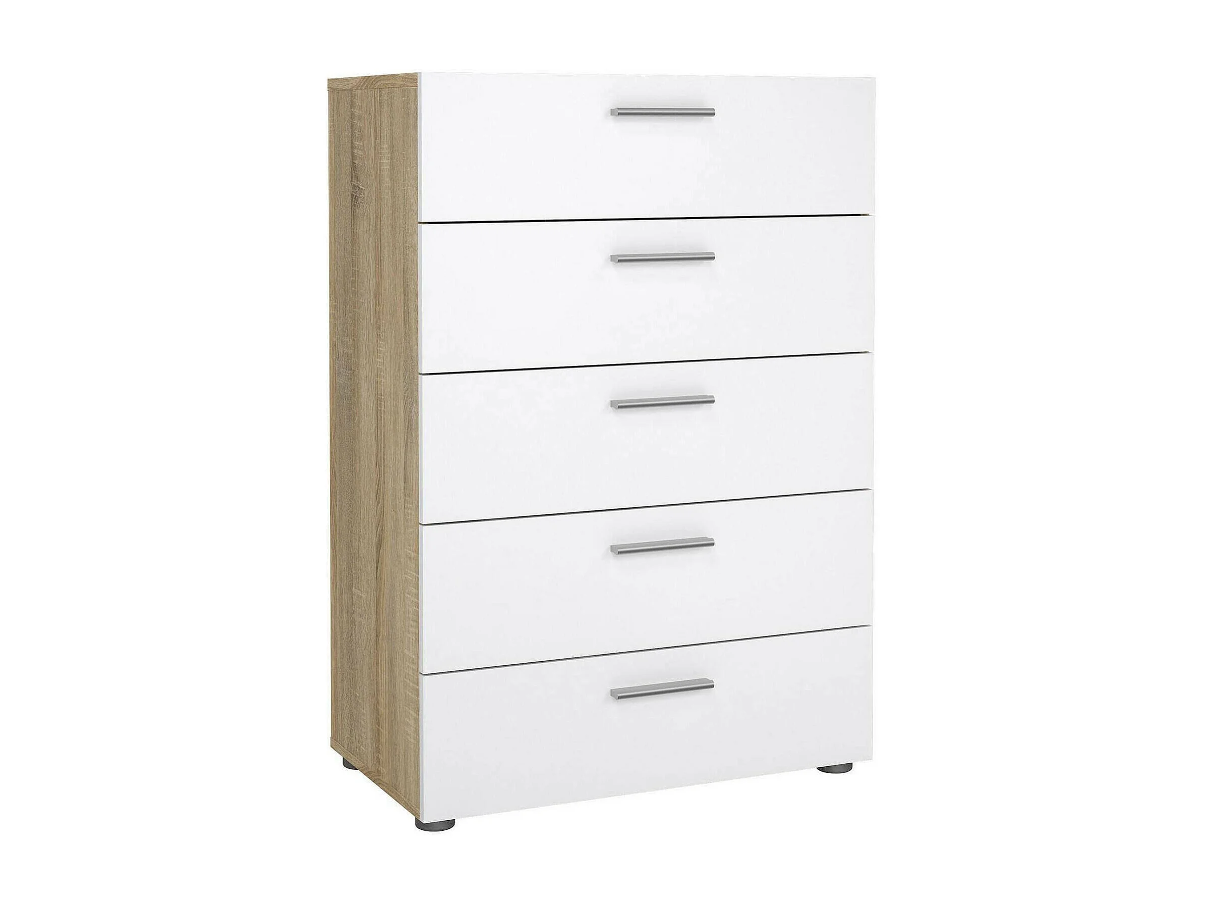 Commode Drosell, Commode polyvalente, Commode de chambre, Meuble avec tiroirs, 70x40 h102 cm, Chêne et Blanc