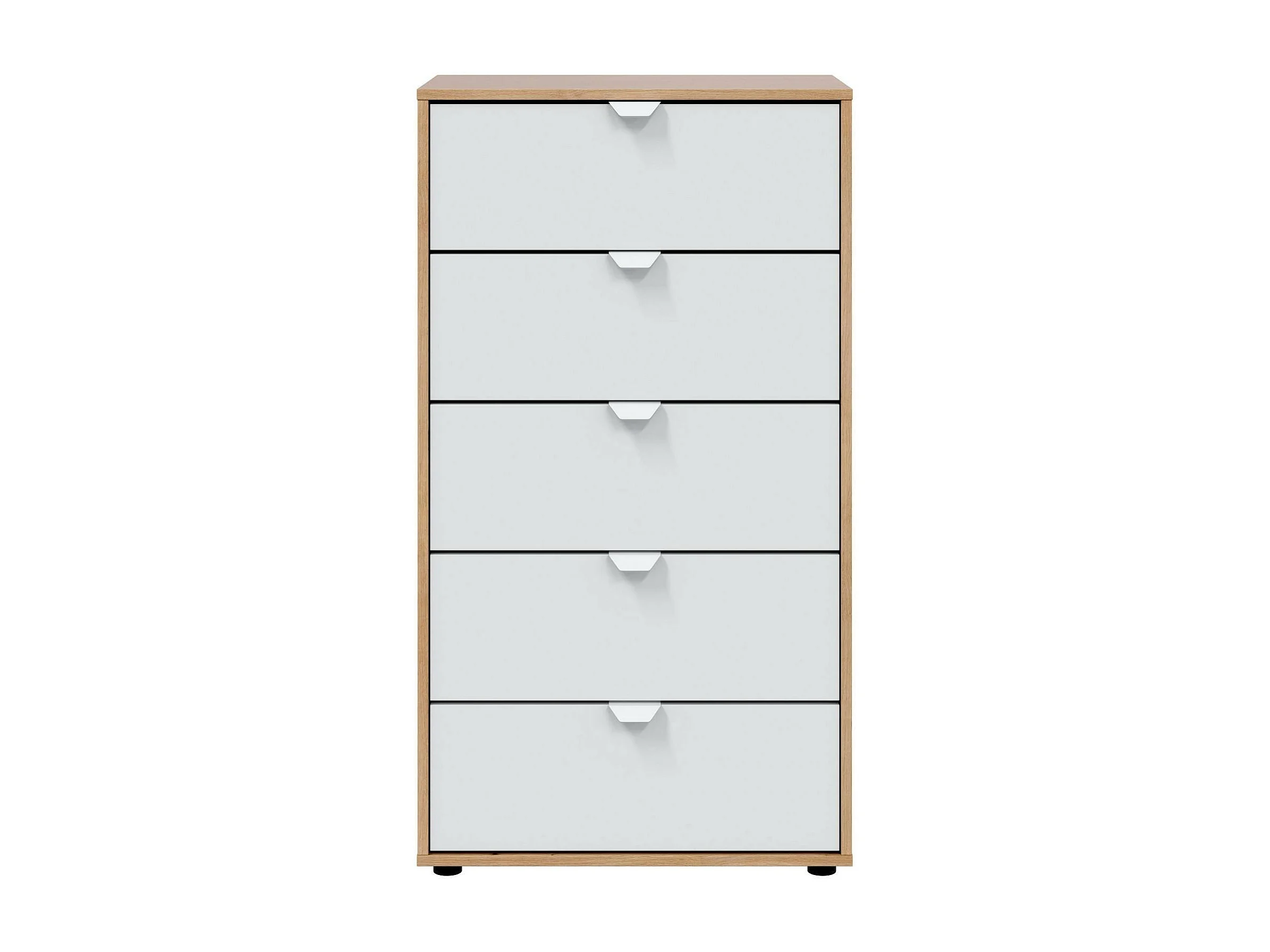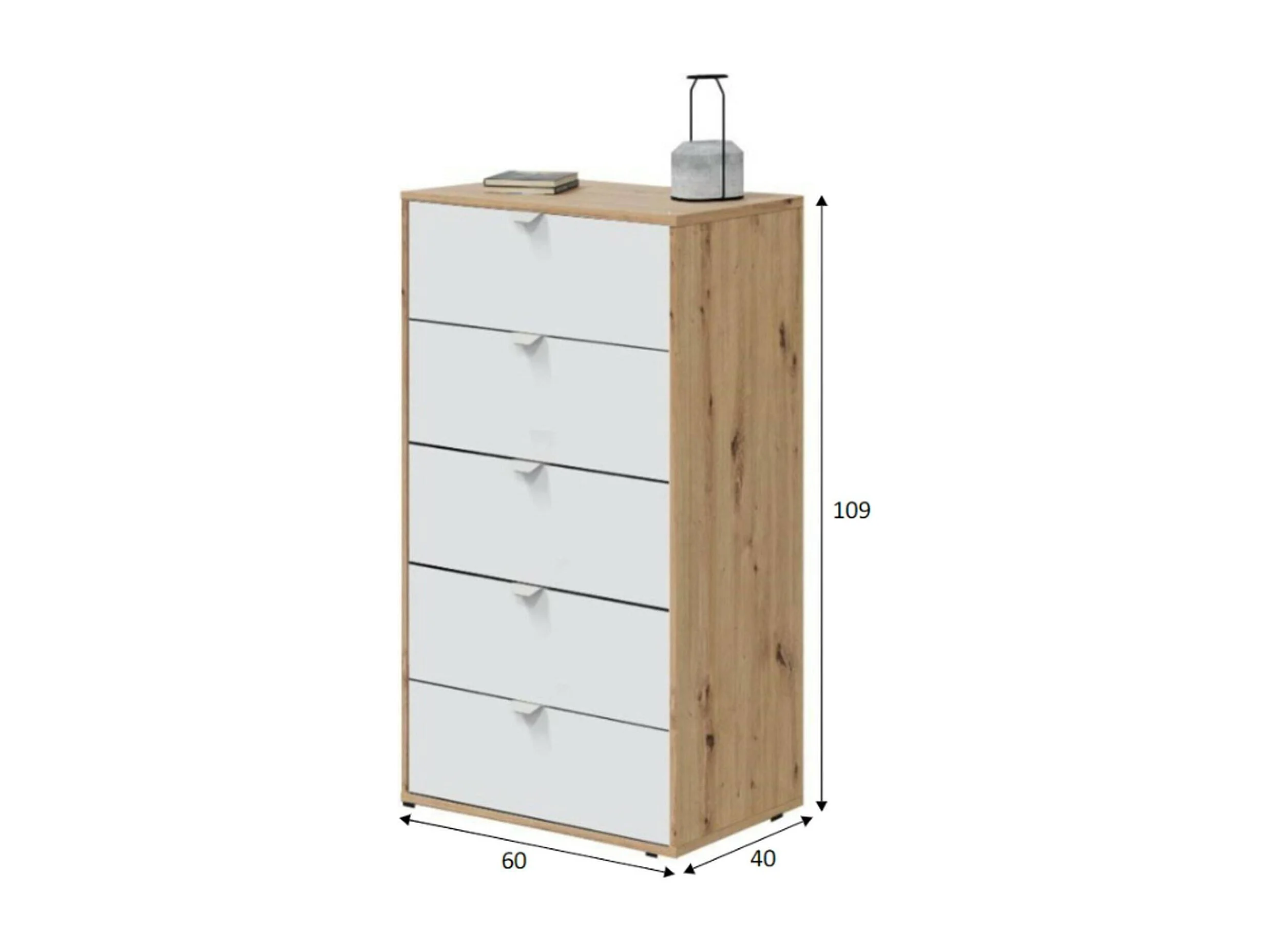 Commode Dzill, Commode polyvalente, Commode de chambre, Meuble avec tiroirs, 60x40 h109 cm, Blanc et n?uds de chêne clair