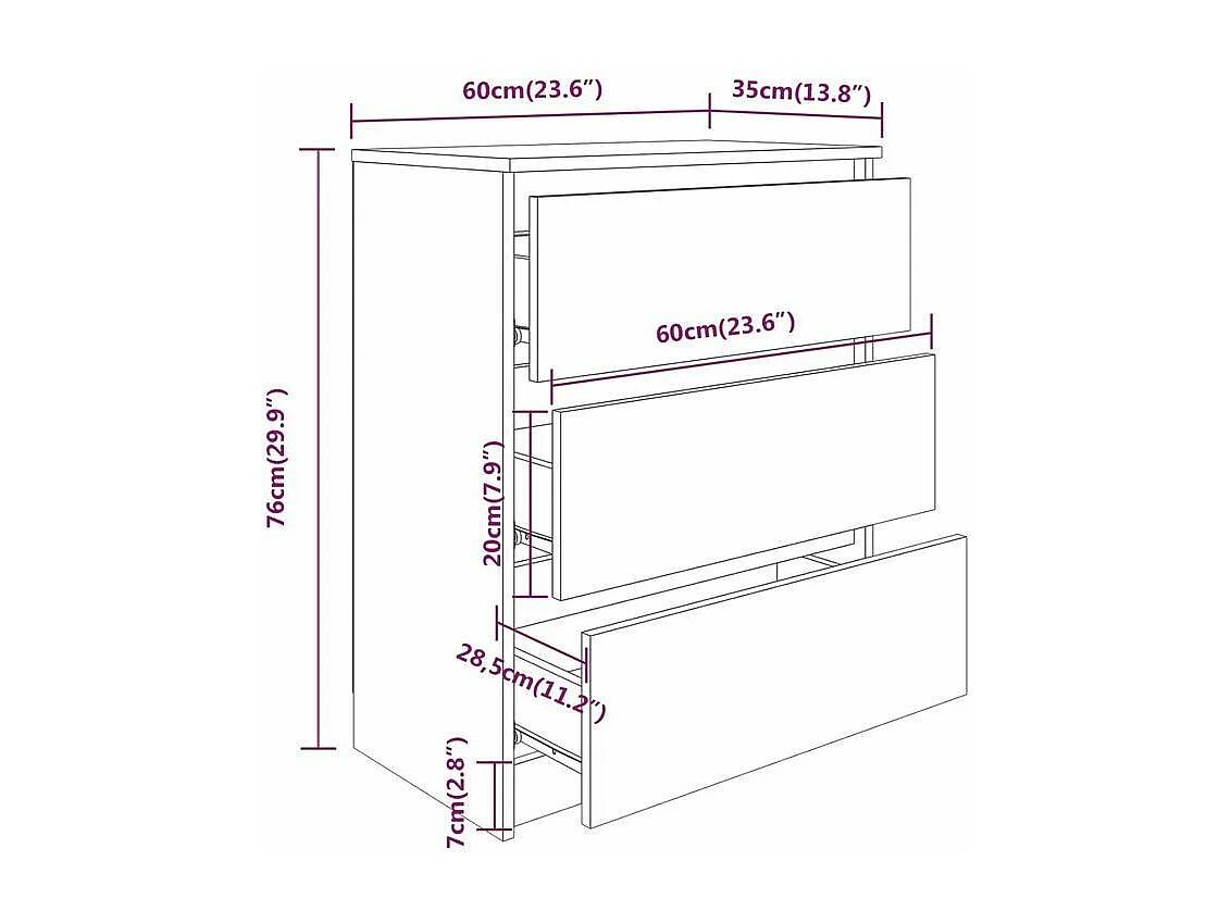 Commode 3 tiroirs moderne Karona 60cm - Choix raffiné pour un rangement efficace-Couleur Marron noisette