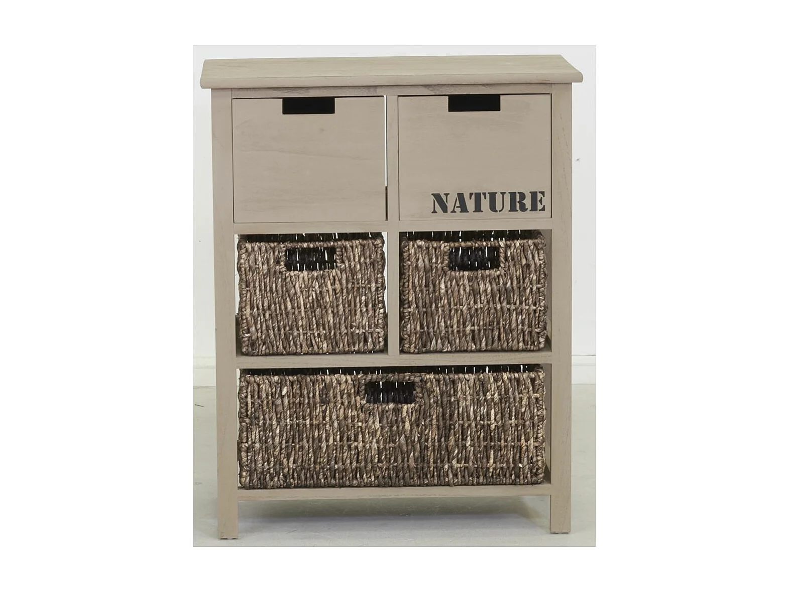 Armoire Commode Blanc Marron 4 Tiroirs 1 Porte Bois 70x60x30