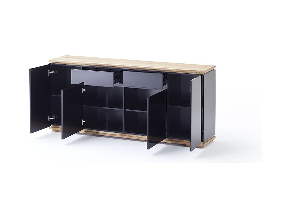 Commode en chêne massif laqué noir brillant - L182 x H81 x P40 cm