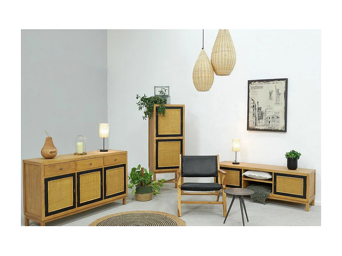 Commode en manguier et cannage