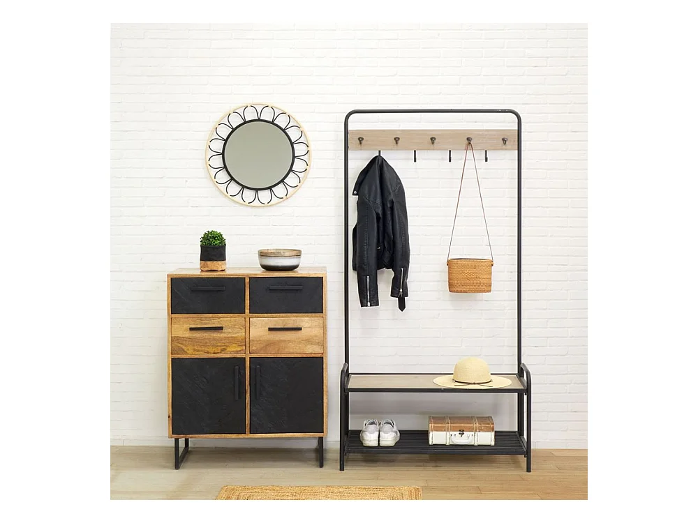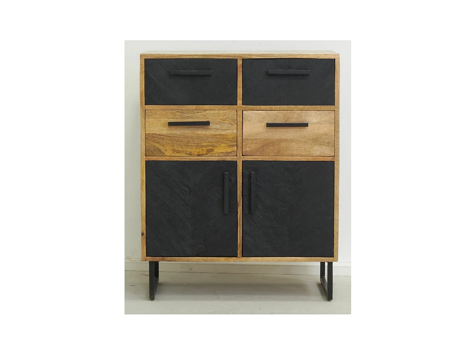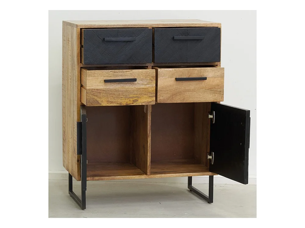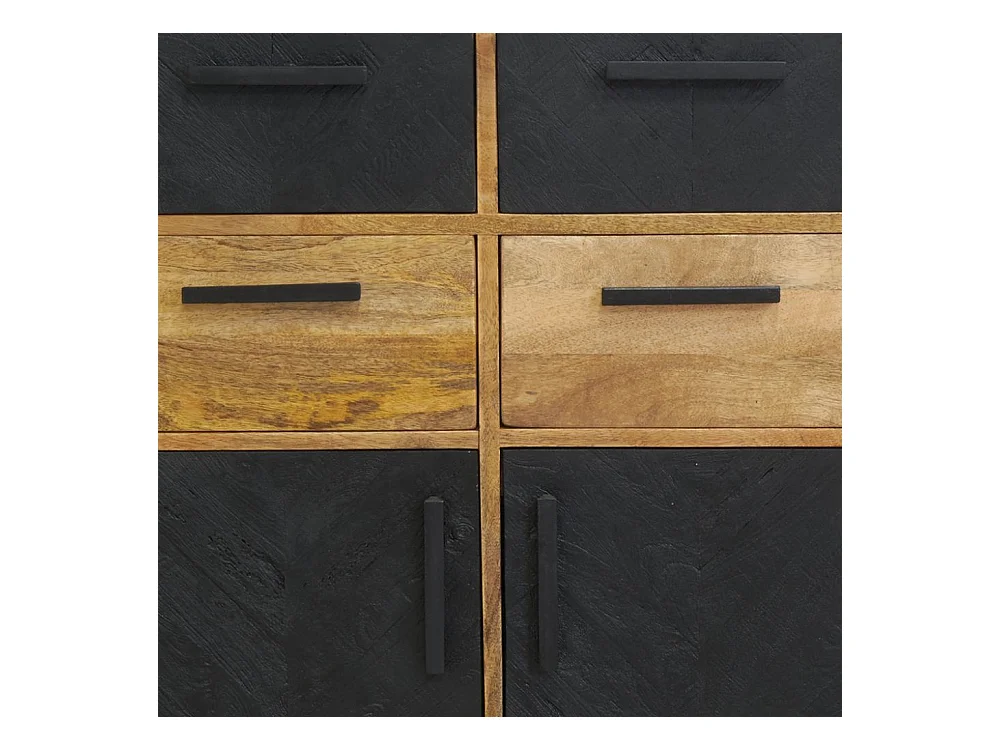 Commode en manguier naturel et teinté noir Damier 4 tiroirs + 2 portes