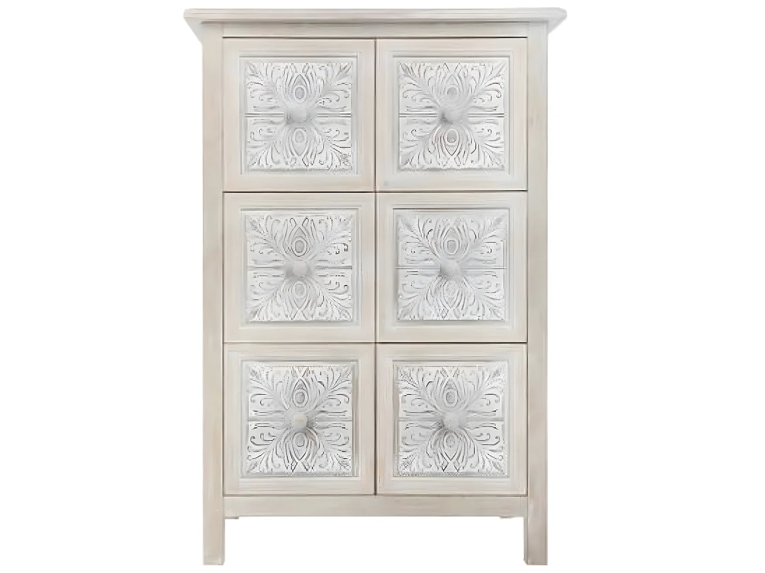 Commode en MDF de 6 tiroirs coloris chêne - Dim : L.64 x l.34 x H.94 cm
