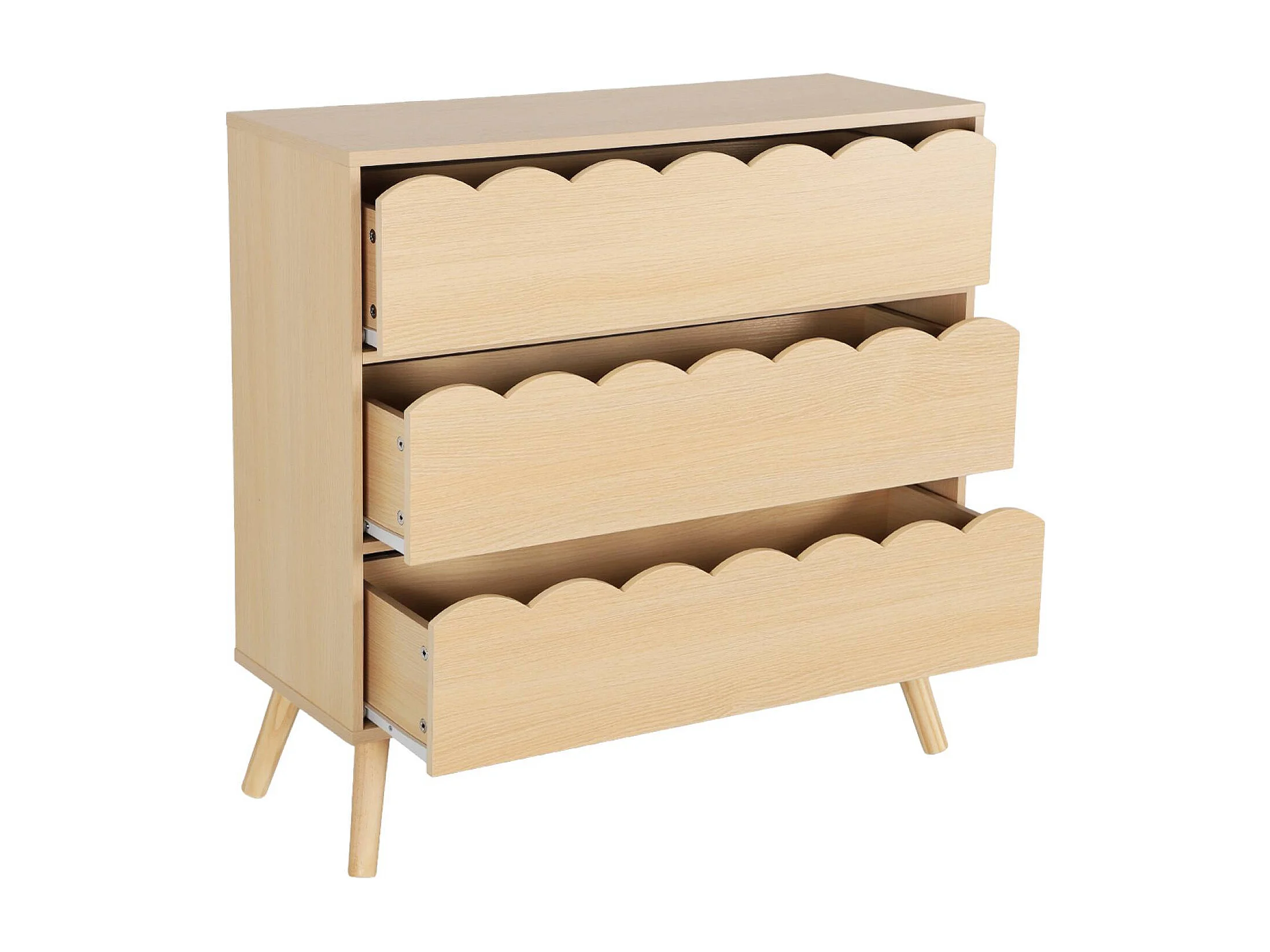 Commode enfant décor bois naturel 3 tiroirs. pieds bois de pin - 80 x 30 x 79 cm - Azur