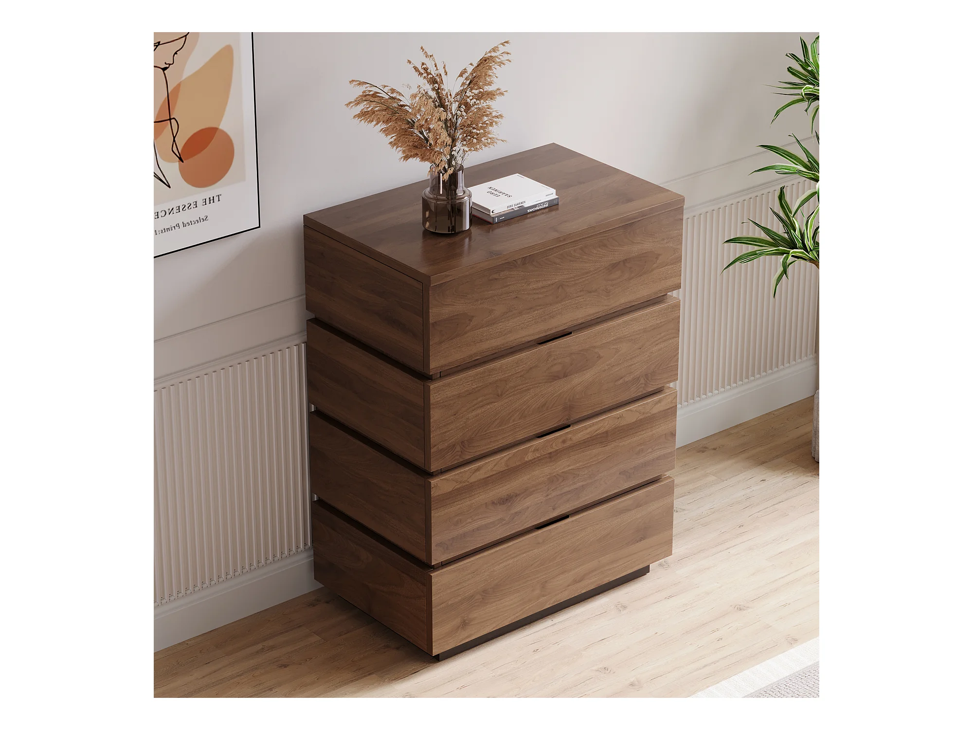 Commode étroite avec 4 tiroirs – Meuble de Rangement Moderne à l’Aspect Bois, Peu encombrant et Haut, idéal pour la Chambre, Le Salon ou Le Couloir, Largeur 40 cm