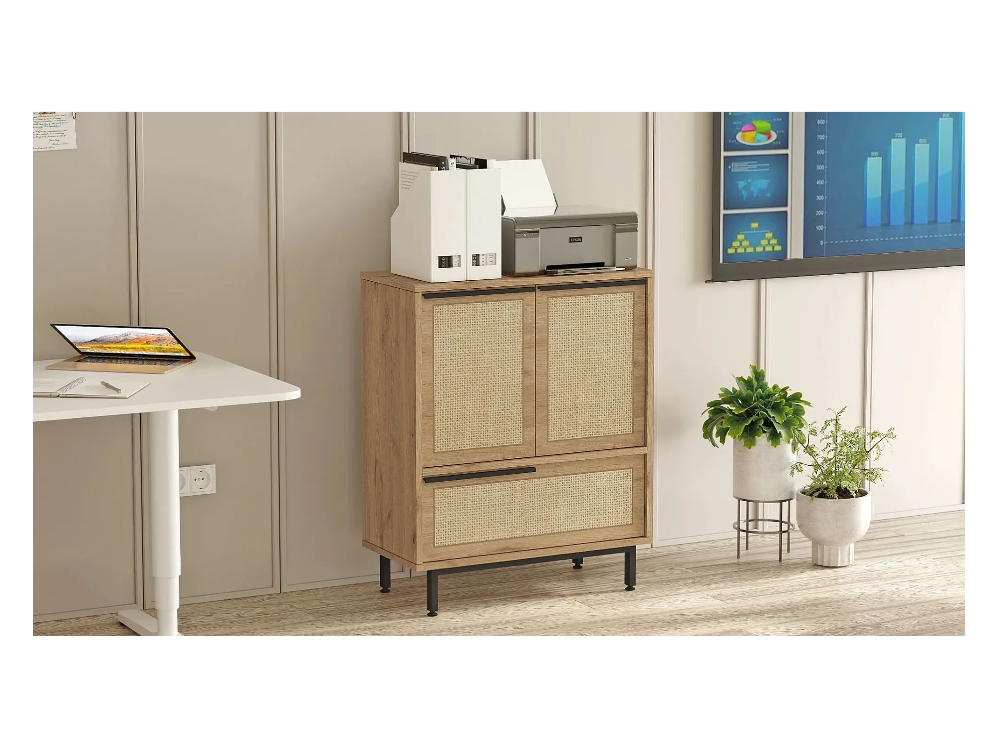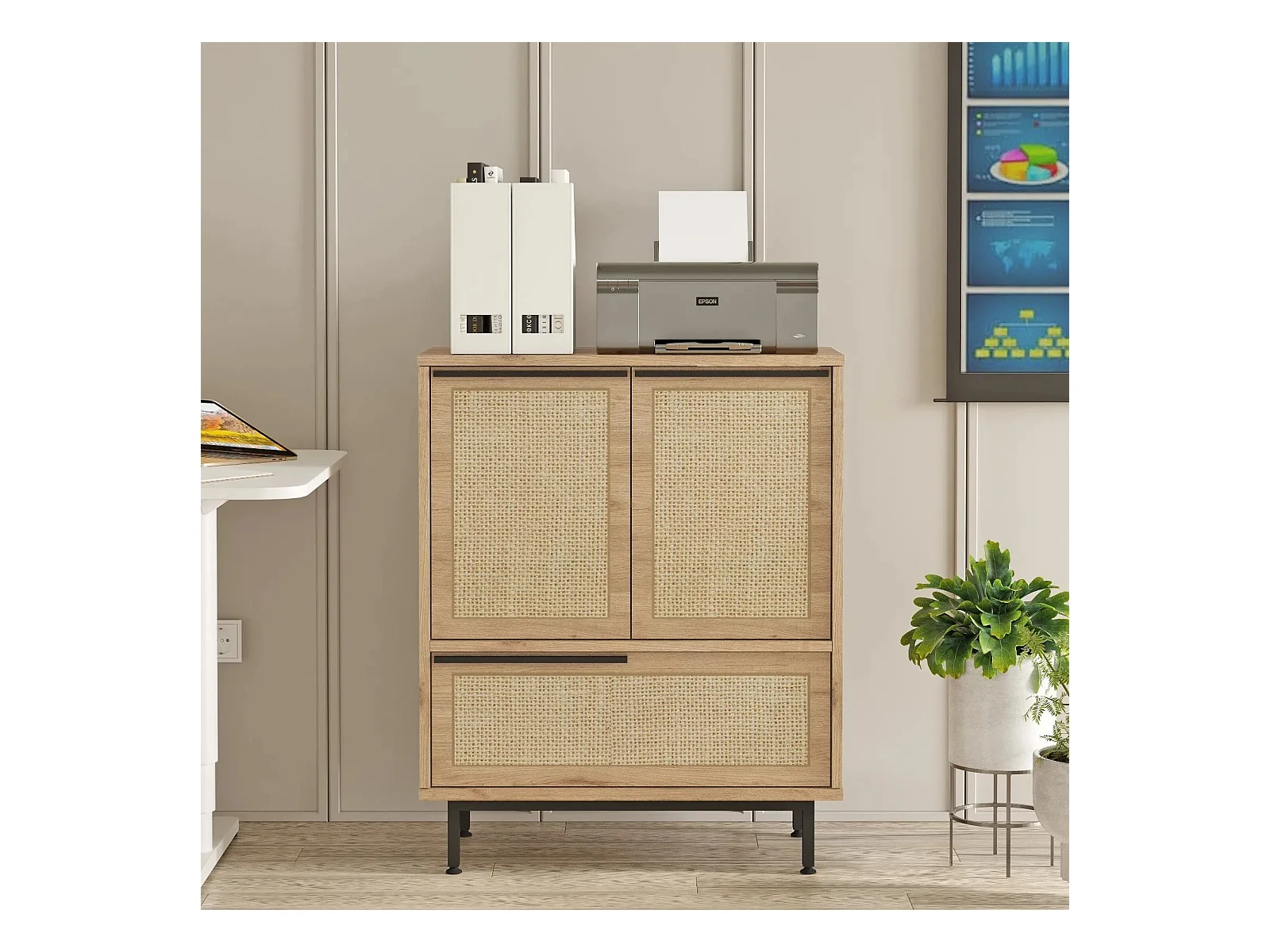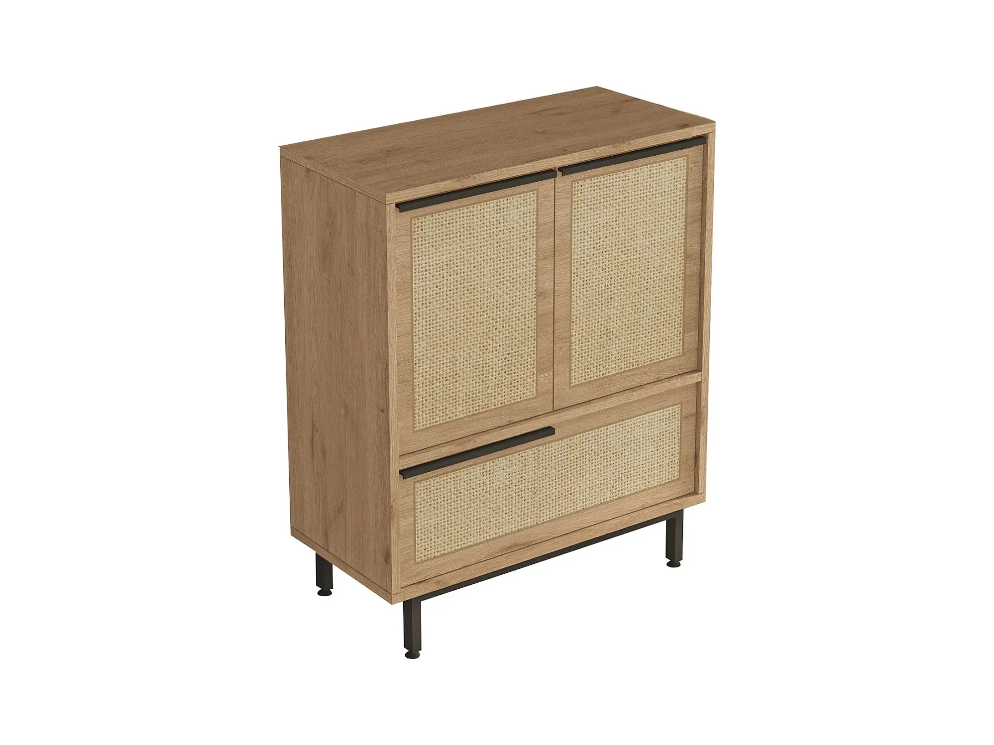 Commode Evelis L75xH90cm Bois et Rotin clair