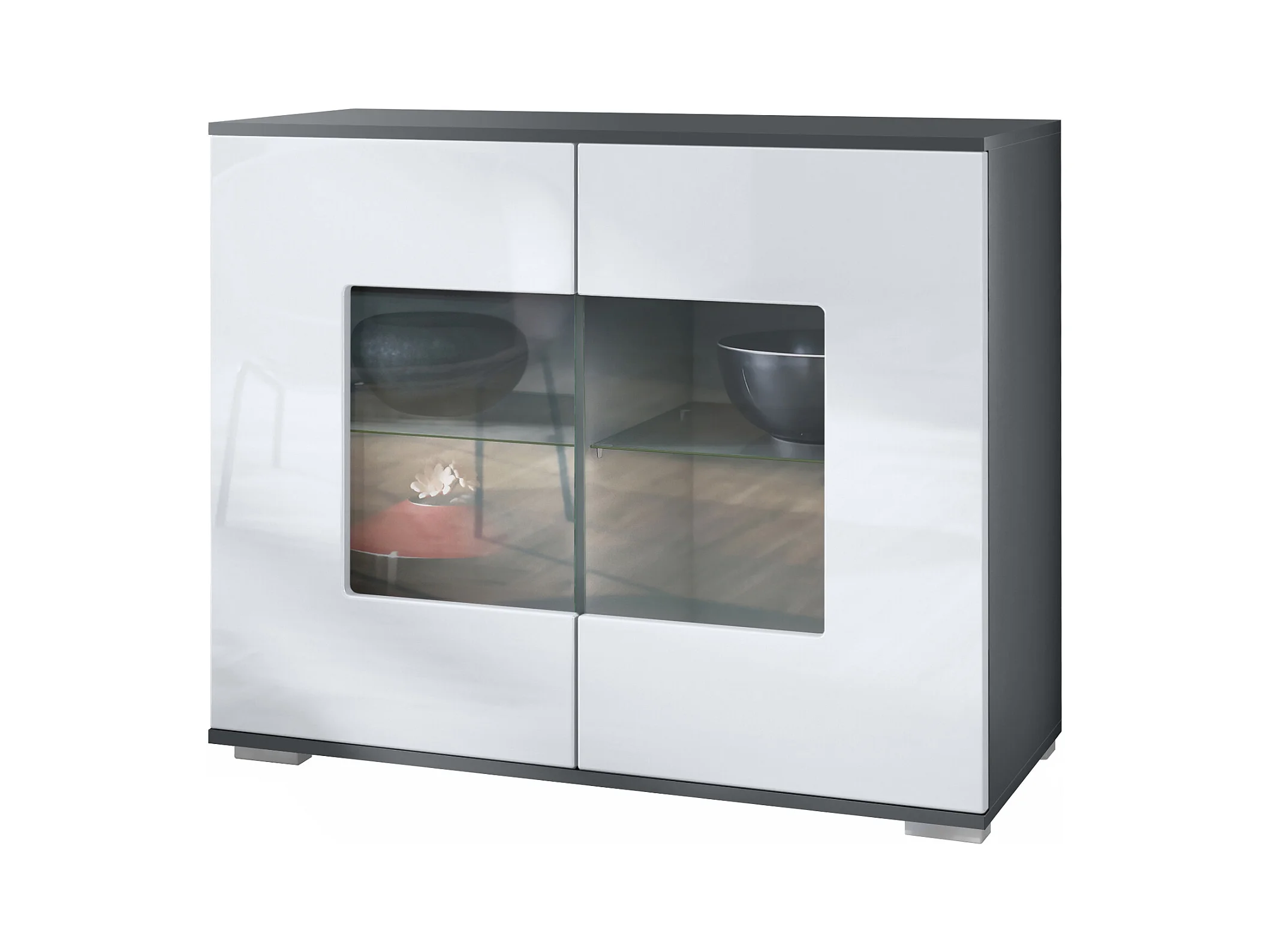 Commode Grömitz V3, Armoire de cuisine moderne avec 2 grandes portes vitrées anthracite mat / blanc haute brillance (92,5 x 75.5 x 35)