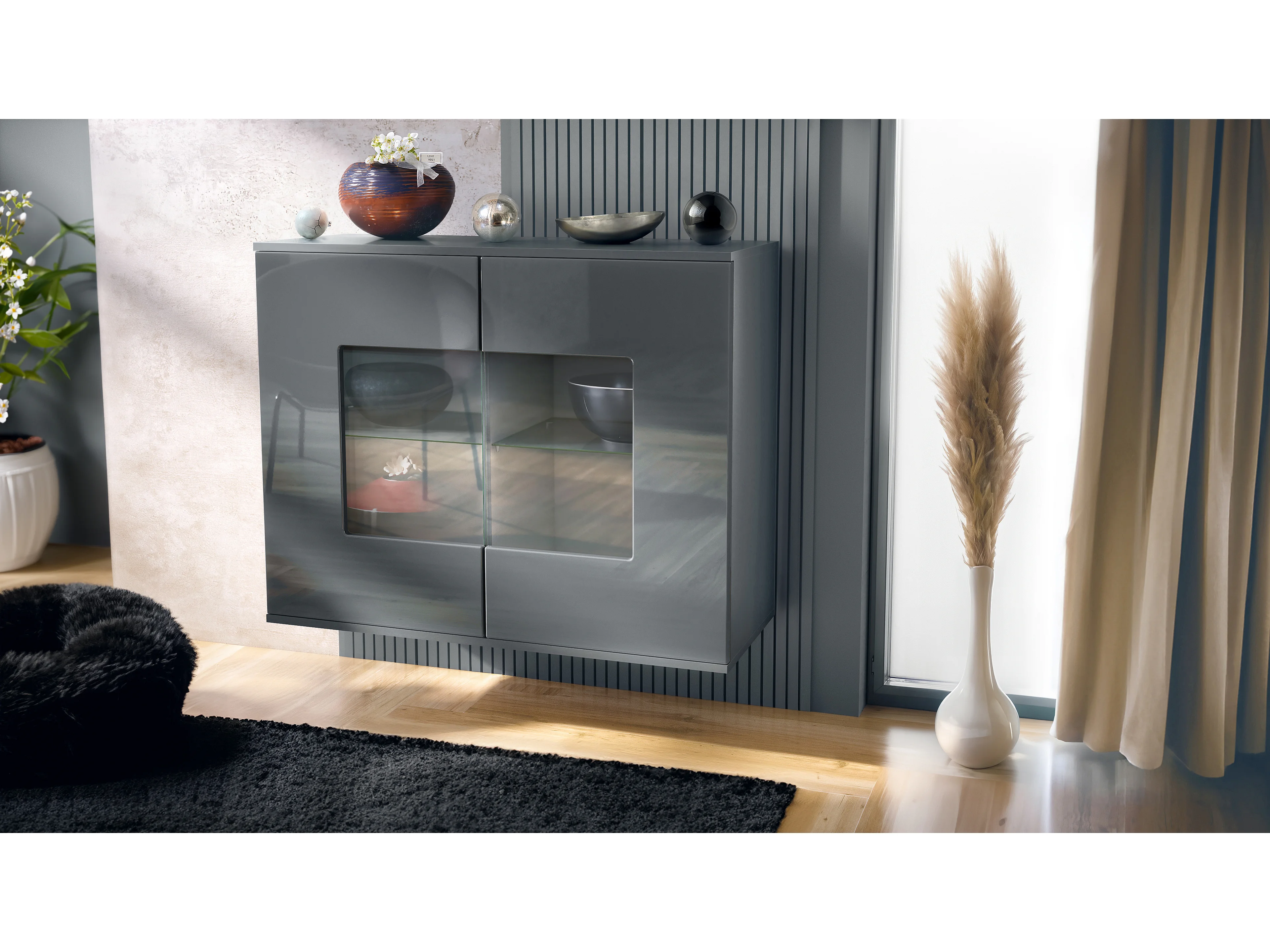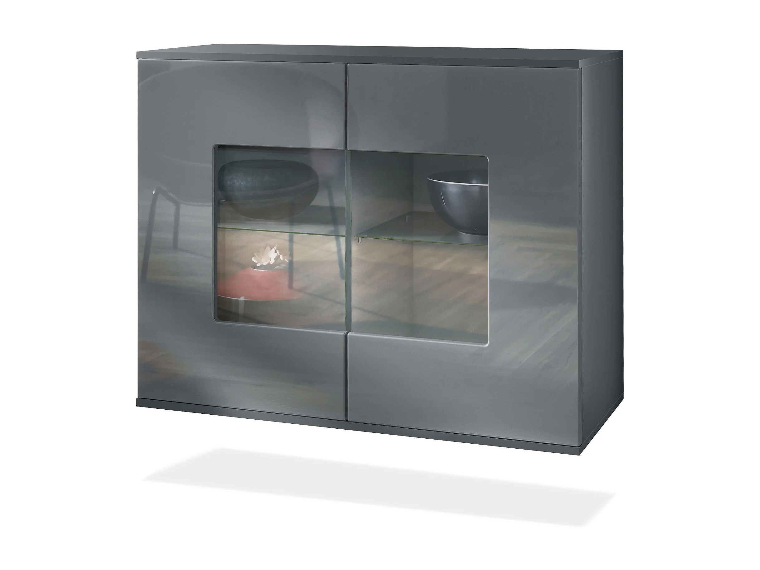 Commode Grömitz V3, Armoire de cuisine moderne avec 2 grandes portes vitrées anthracite mat / gris haute brillance (92,5 x 73.5 x 35)