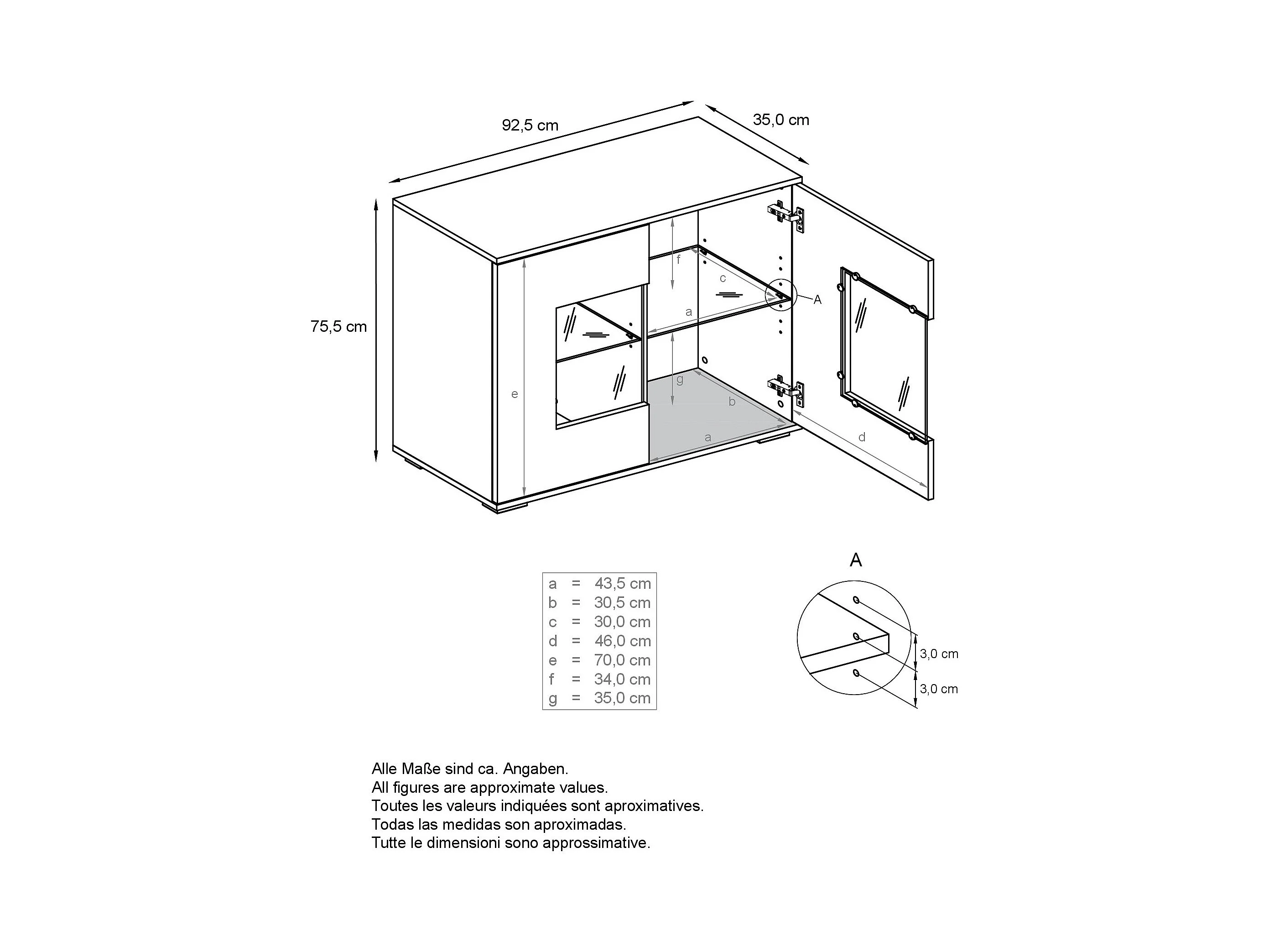 Commode Grömitz V3, Armoire de cuisine moderne avec 2 grandes portes vitrées incl. éclairage RGB blanc mat / gris haute brillance (92,5 x 75.5 x 35)