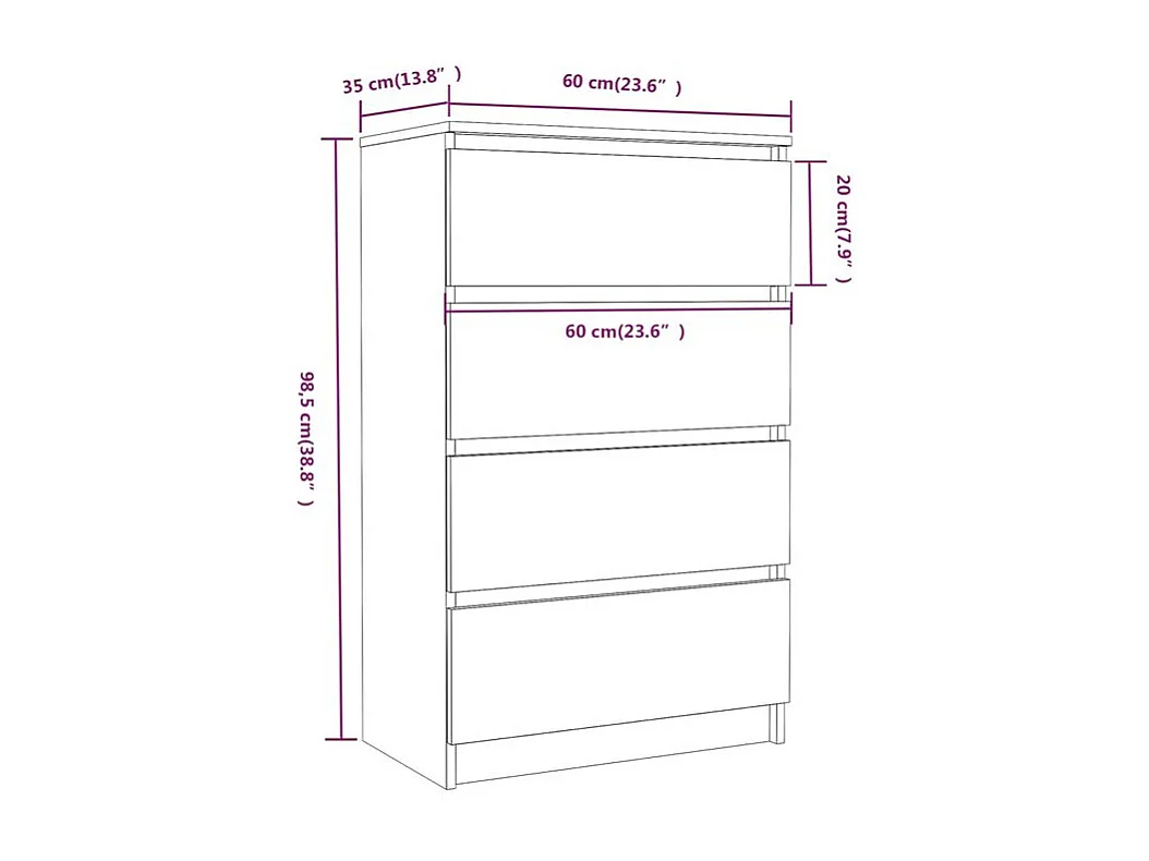 Commode 4 tiroirs Chikee 60cm - Bois d'ingénierie-Couleur Chêne gris