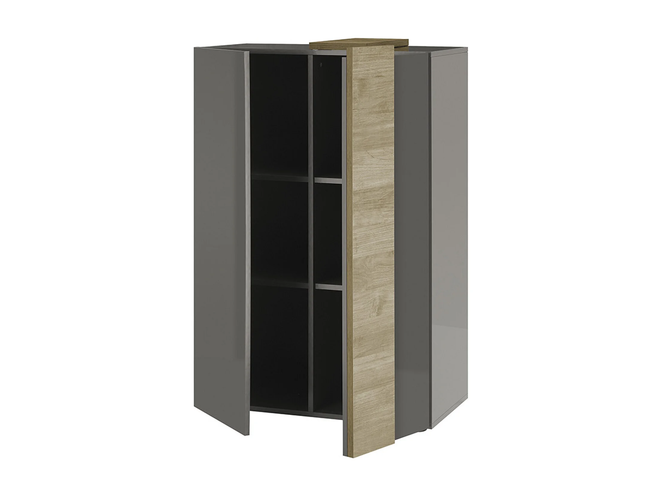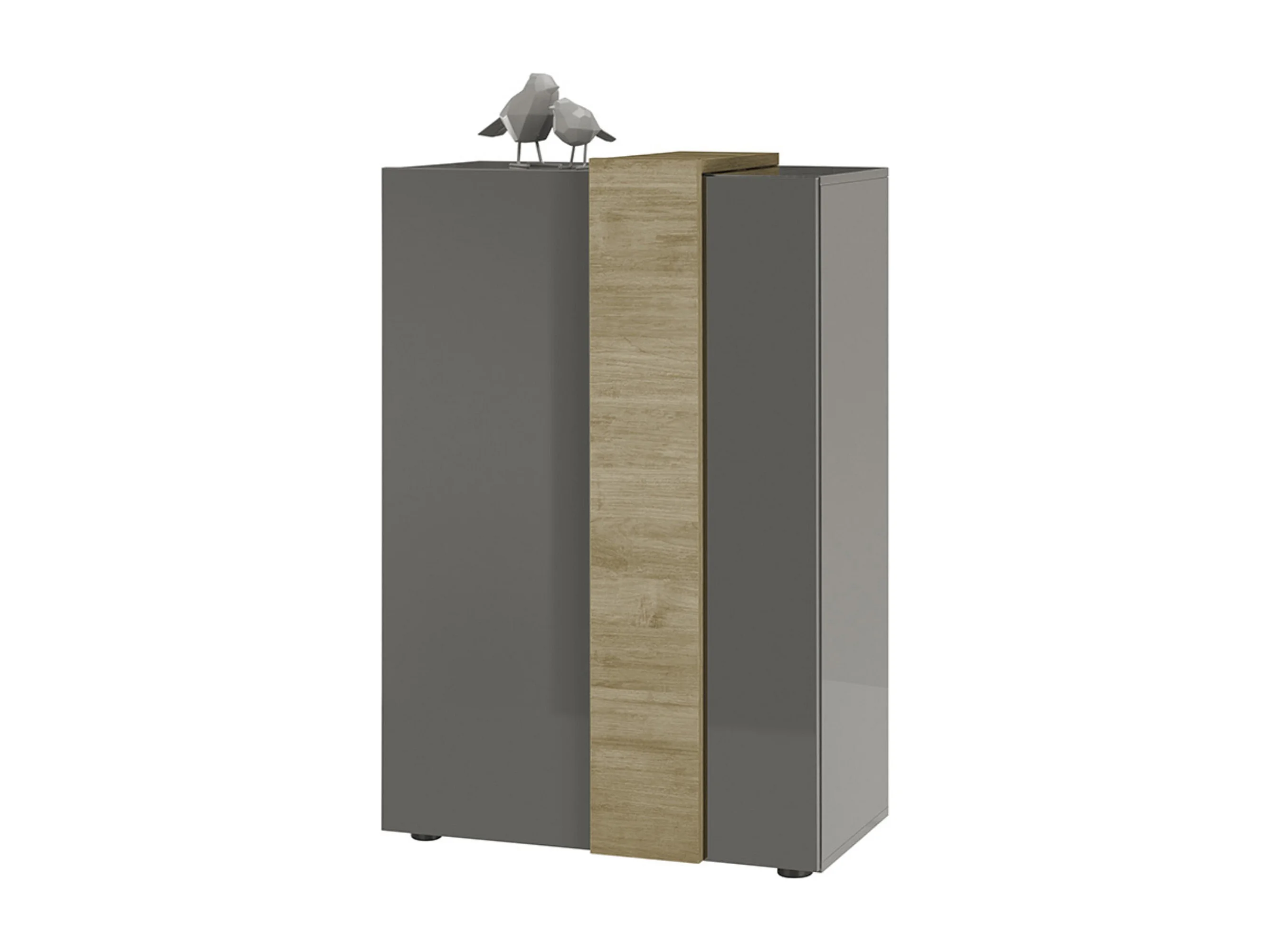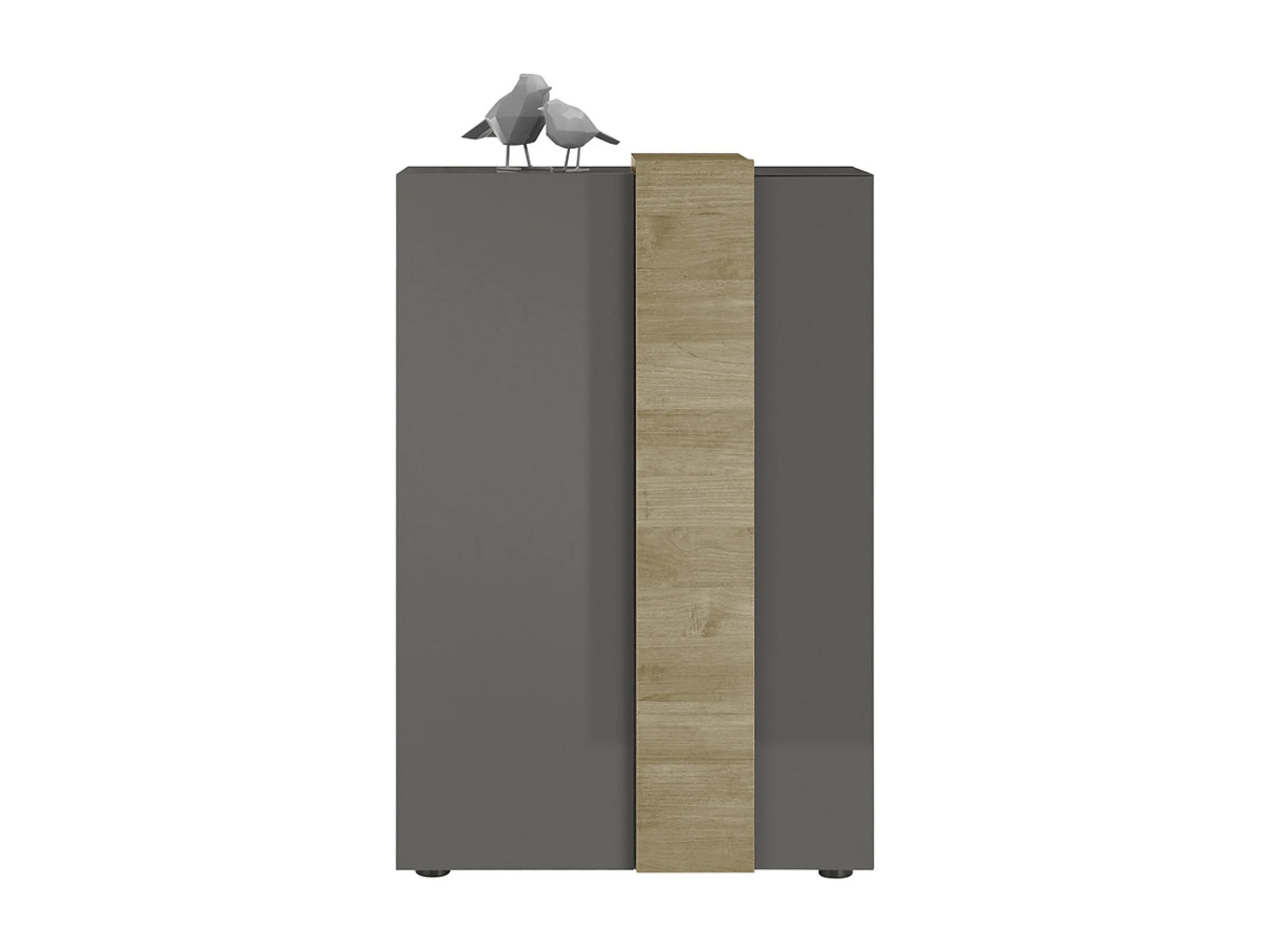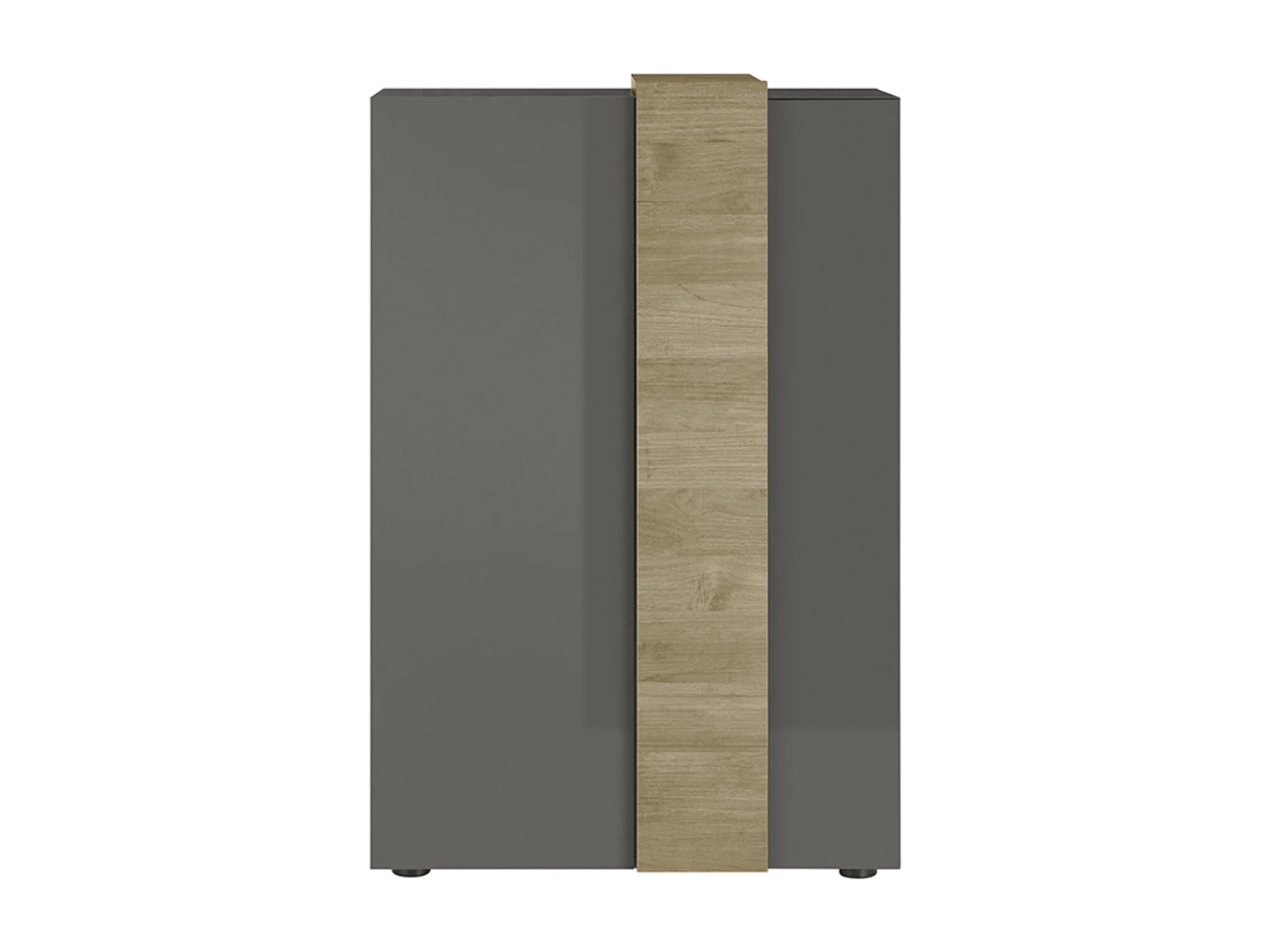 Commode haute, meuble de rangement coloris gris brillant, chêne - Longueur 78 x Hauteur 116 x Profondeur 44 cm