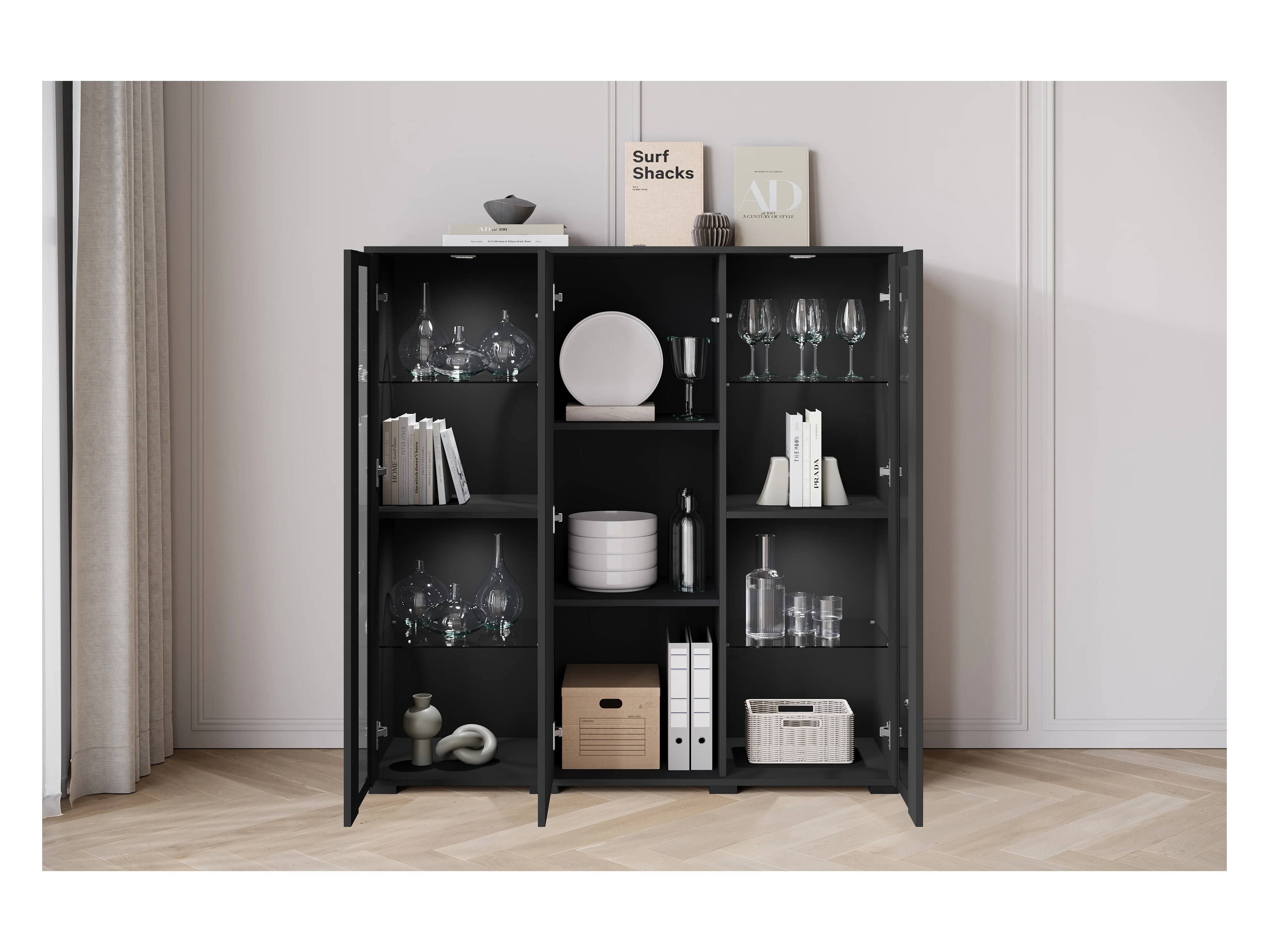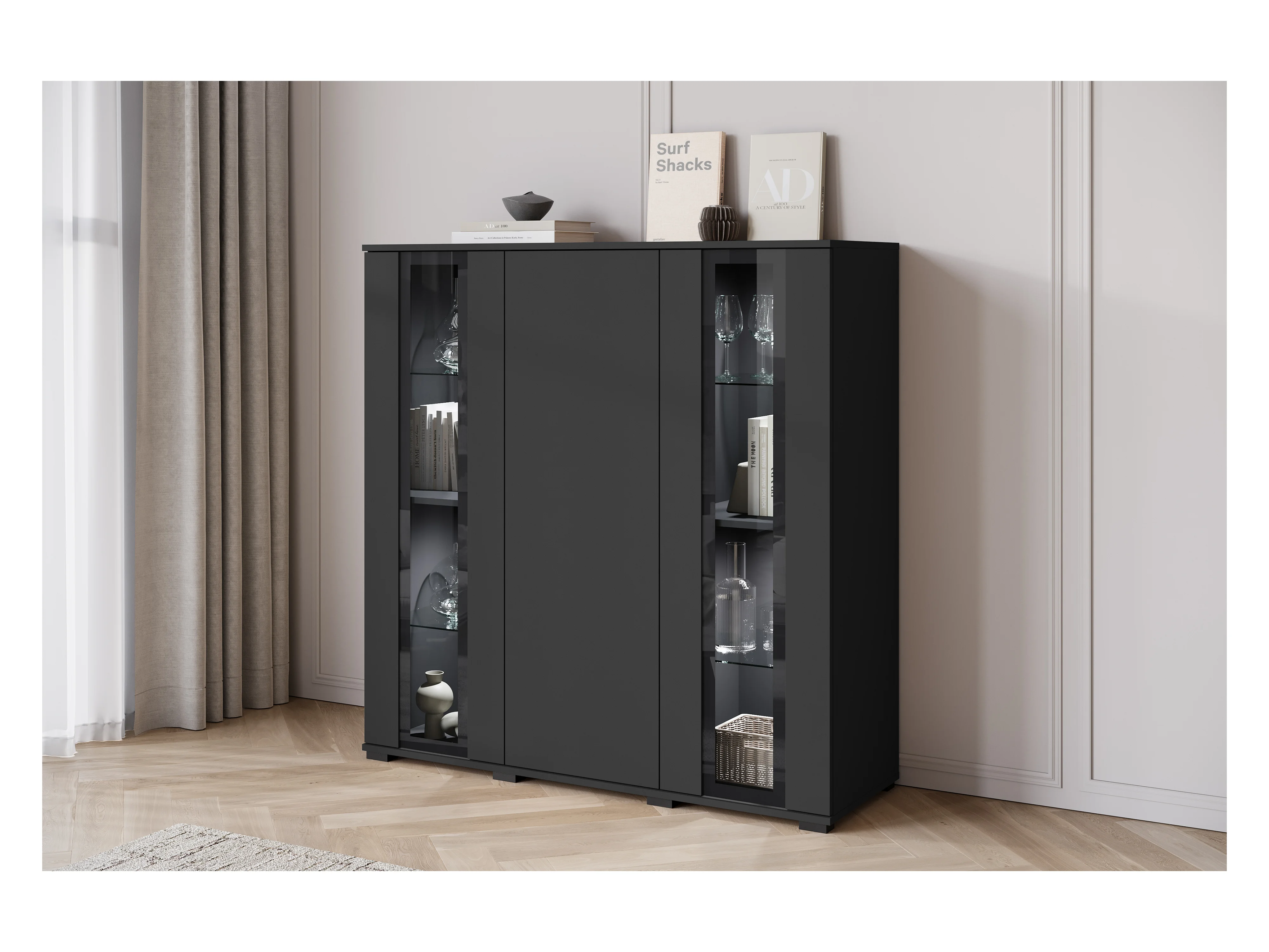 Buffet haut moderne 120 cm – vitrine haute pour salon avec vitrages, couleur noir mat