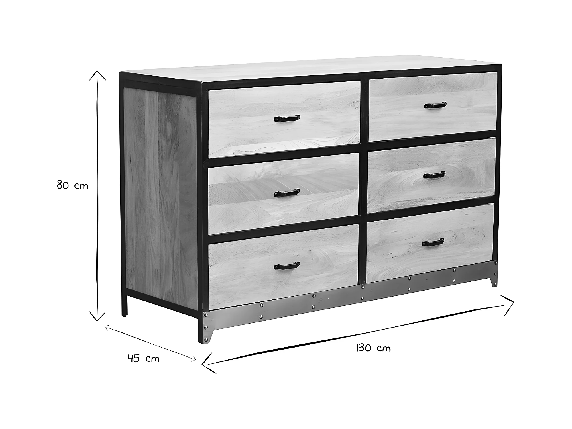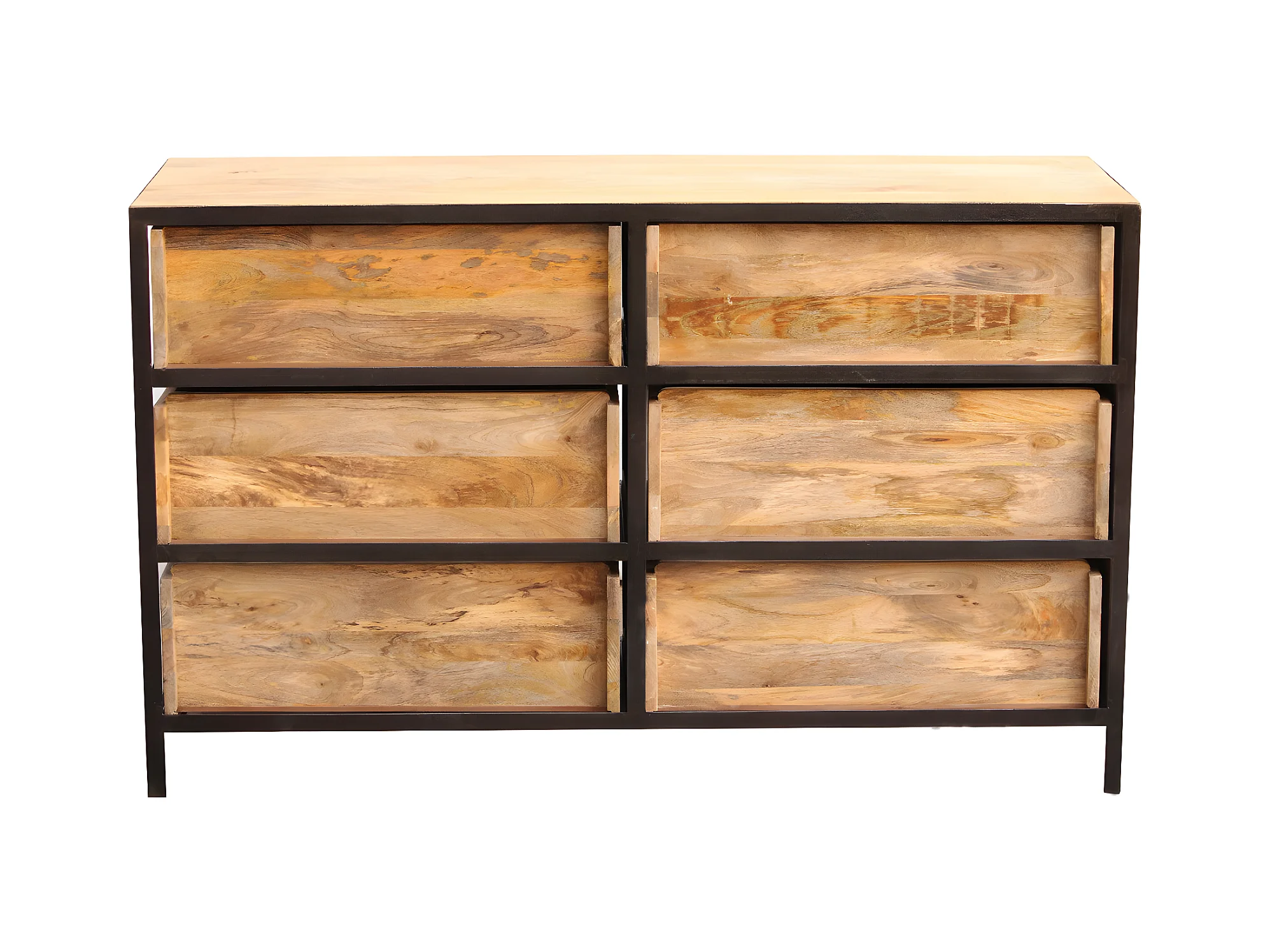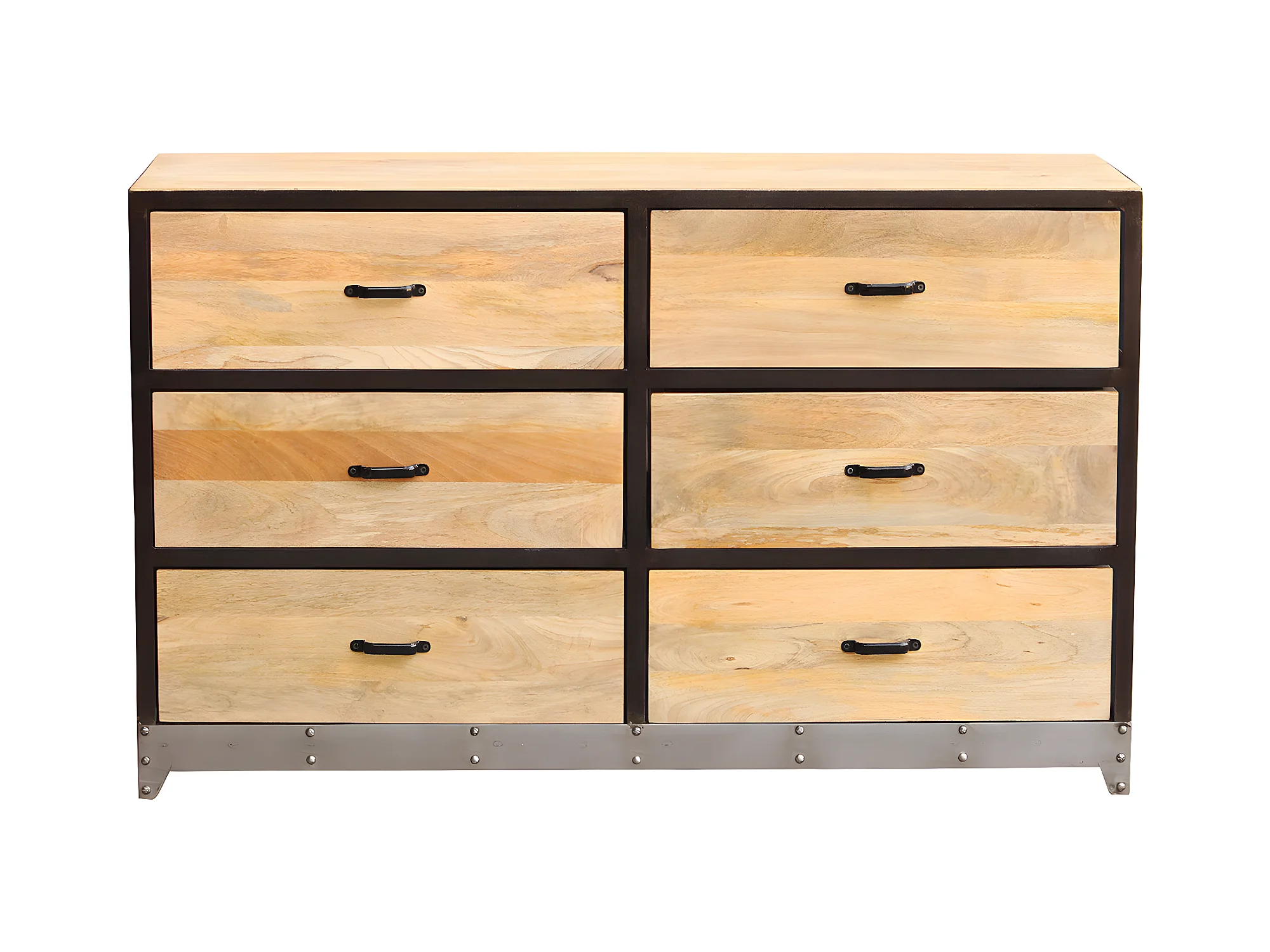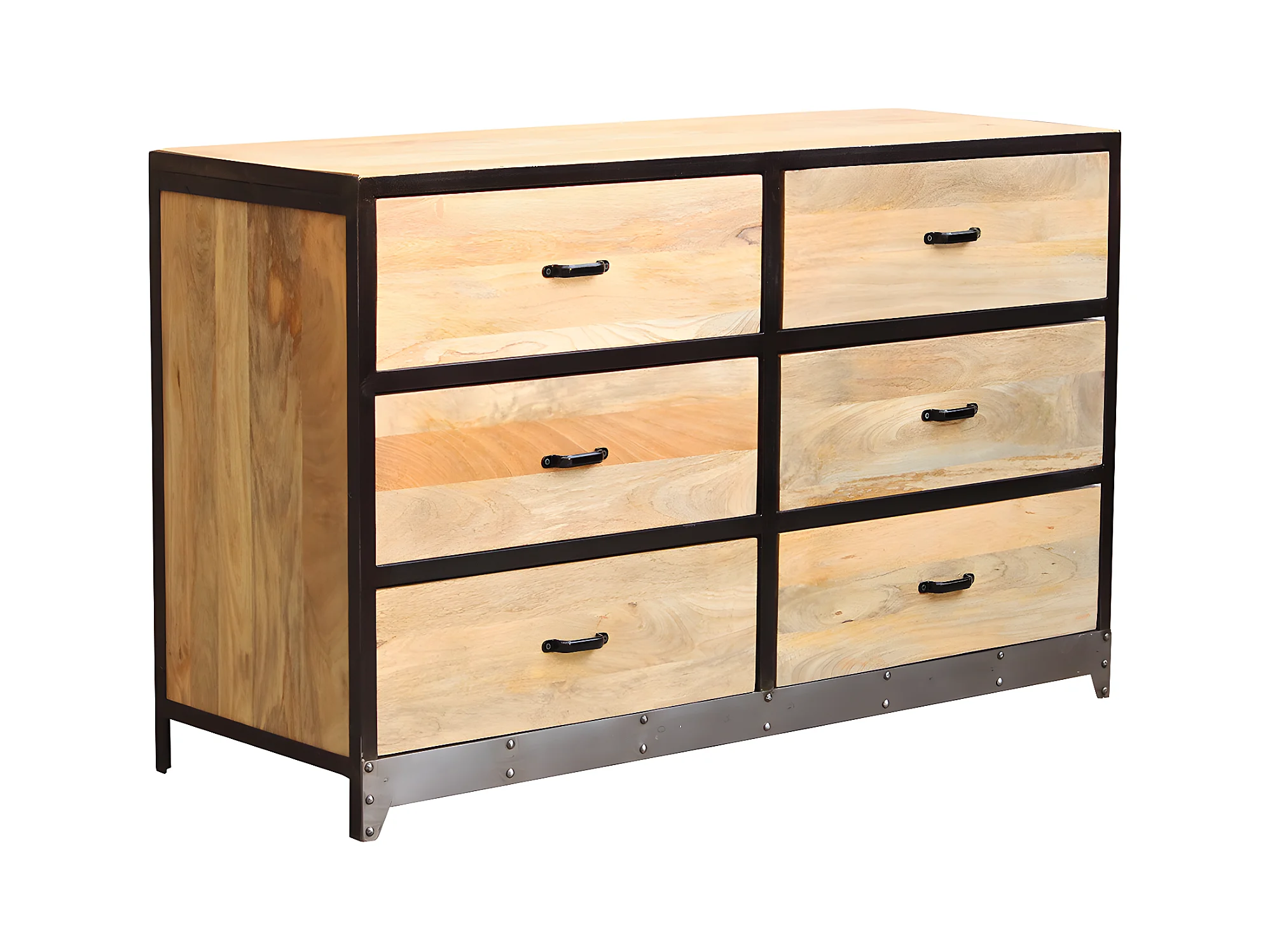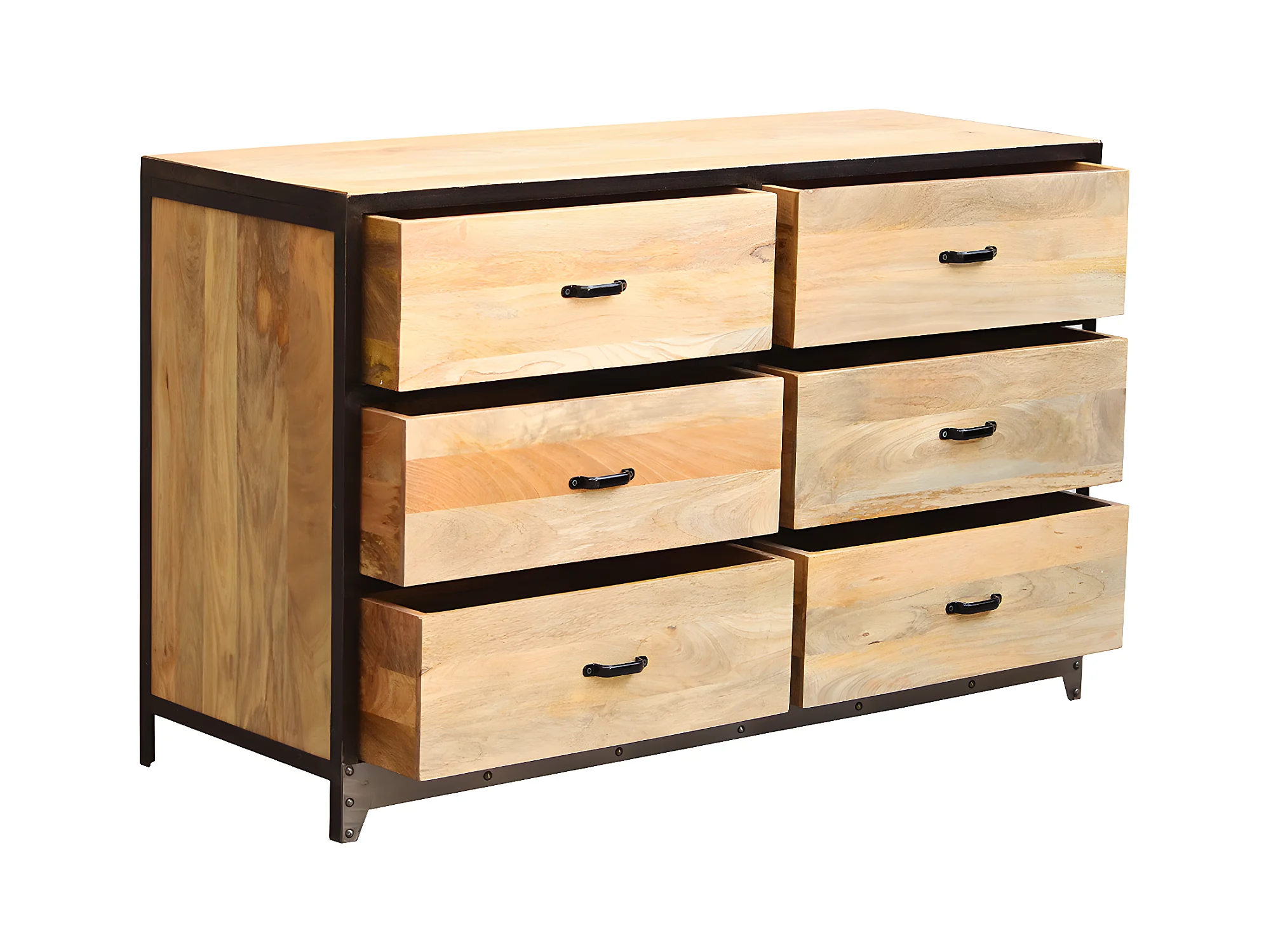 Commode industrielle en bois manguier massif et métal noir 6 tiroirs L130 cm INDUSTRIA