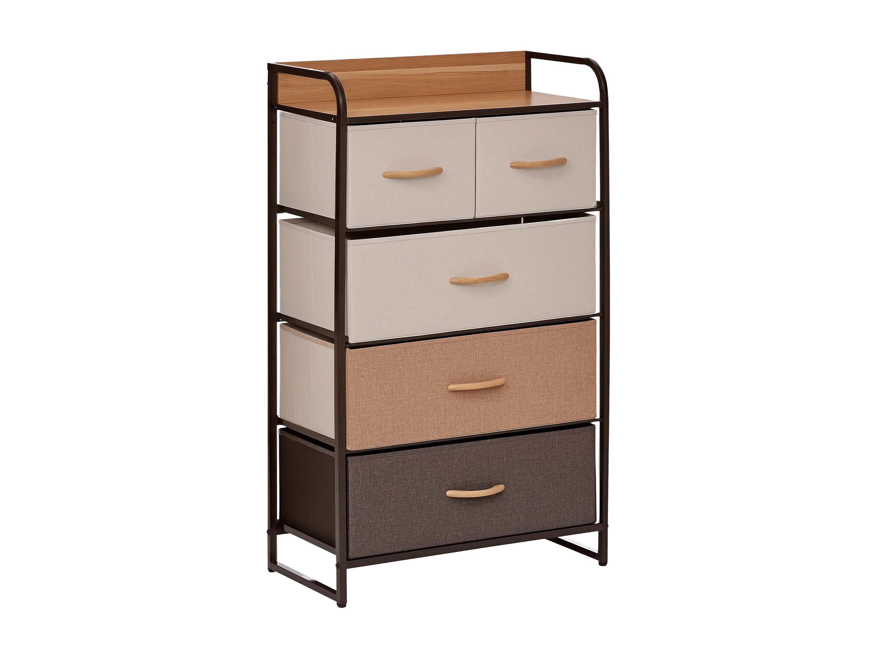 Commode meuble de rangement 5 tiroirs en tissu 87,5 x 29 x 58 cm Marron et beige
