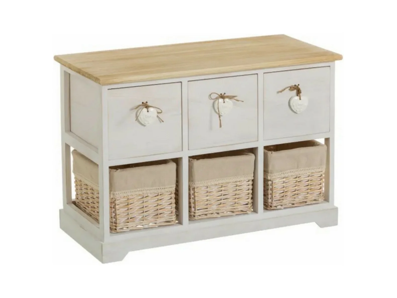 Commode meuble de rangement coloris beige/naturel - Longueur 71 x Profondeur 32 x Hauteur 49 cm