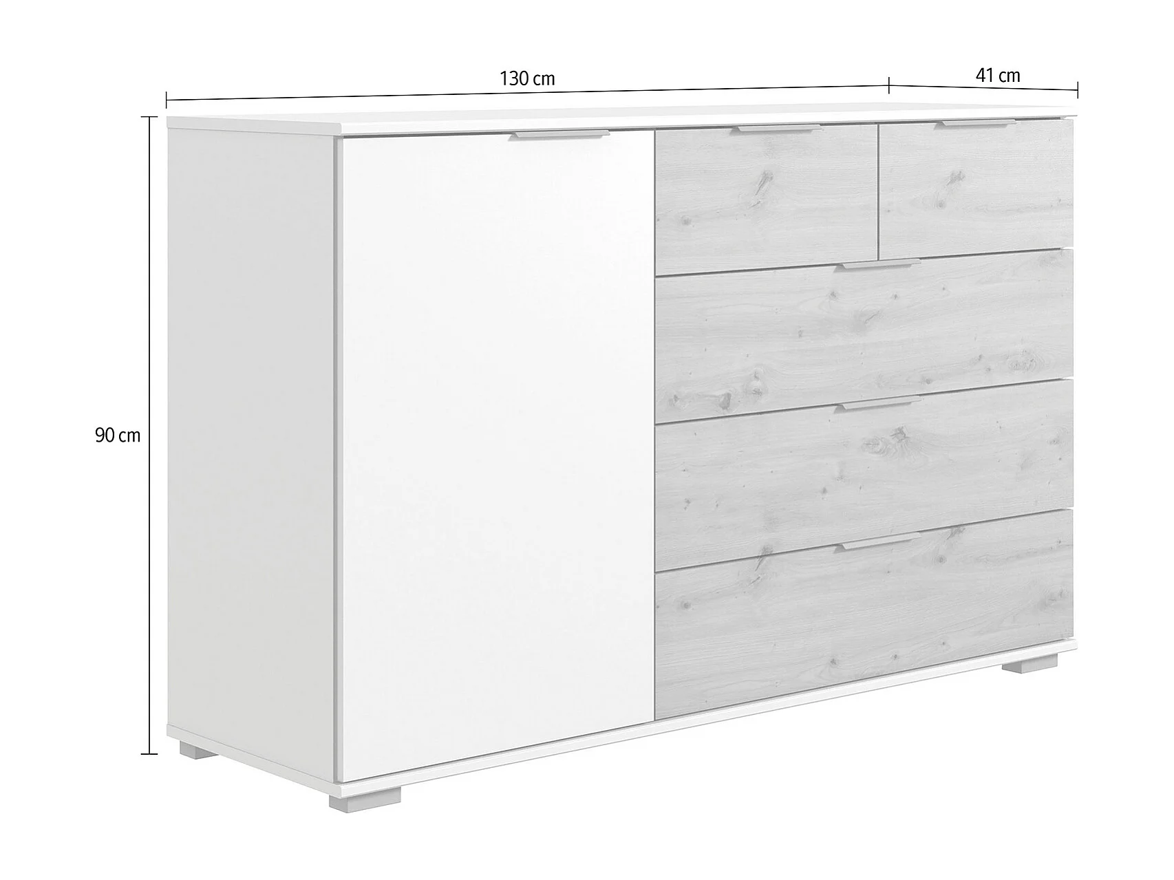 Commode meuble de rangement, coloris graphite/imitation chêne artisan - L. 130 x H. 90 x P. 41 cm