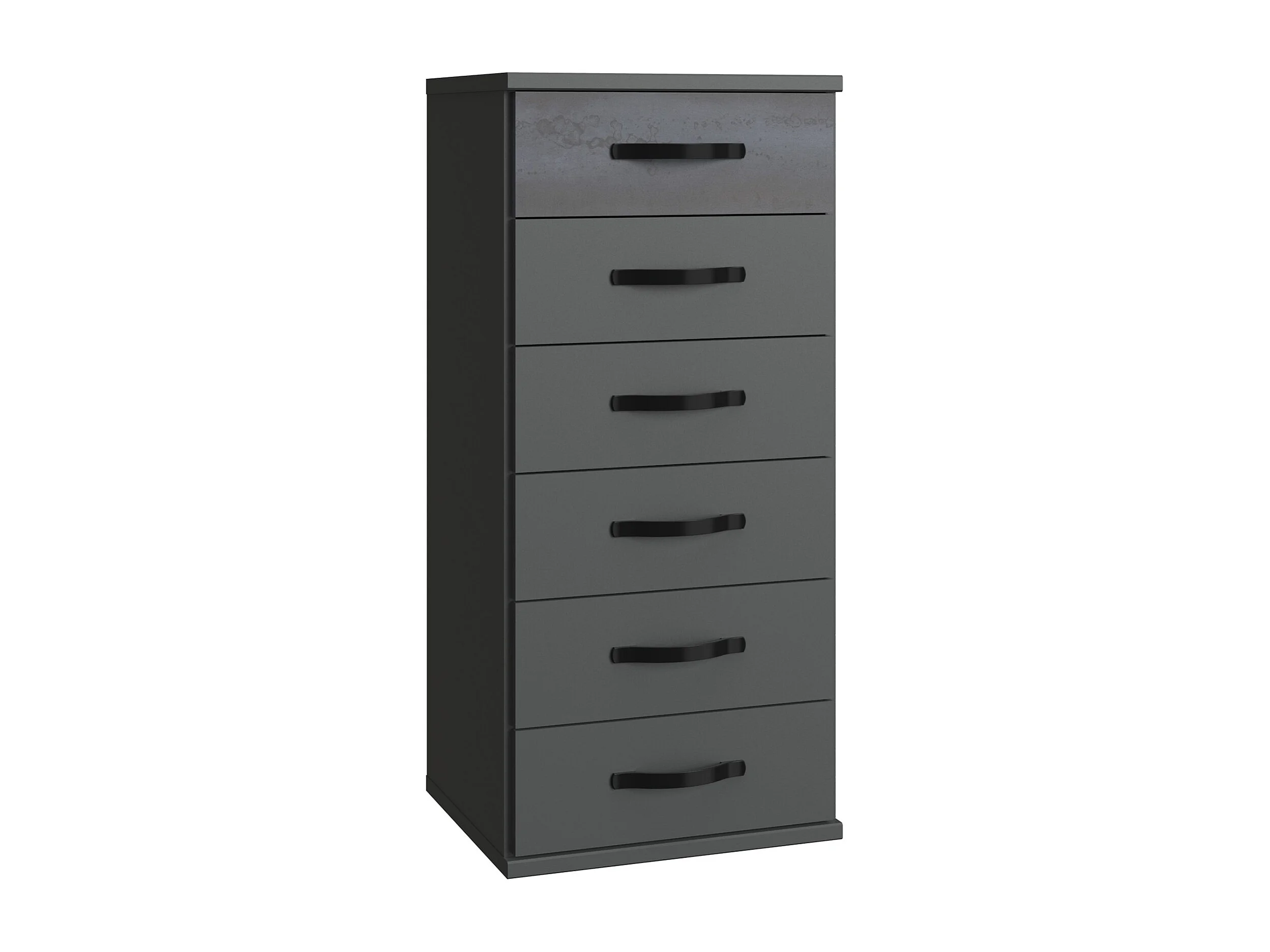 Commode, meuble de rangement coloris Graphite, rechampis noir - L. 46 x H. 106 x P. 40 cm