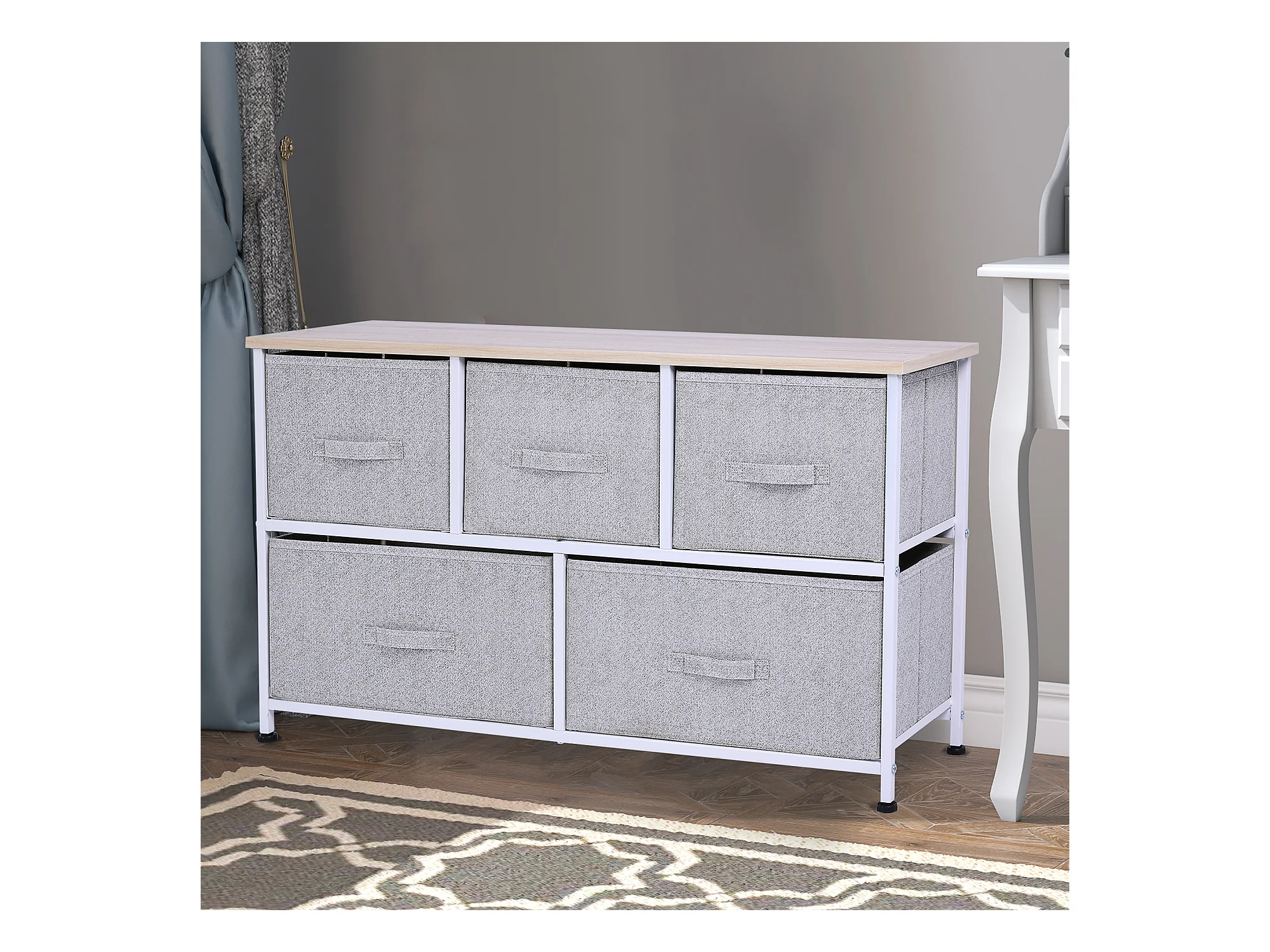 Commode Meuble de Rangement 5 Tiroirs Amovibles pour Chambre Salon Cuisine 83 x 29 x 77 cm Gris