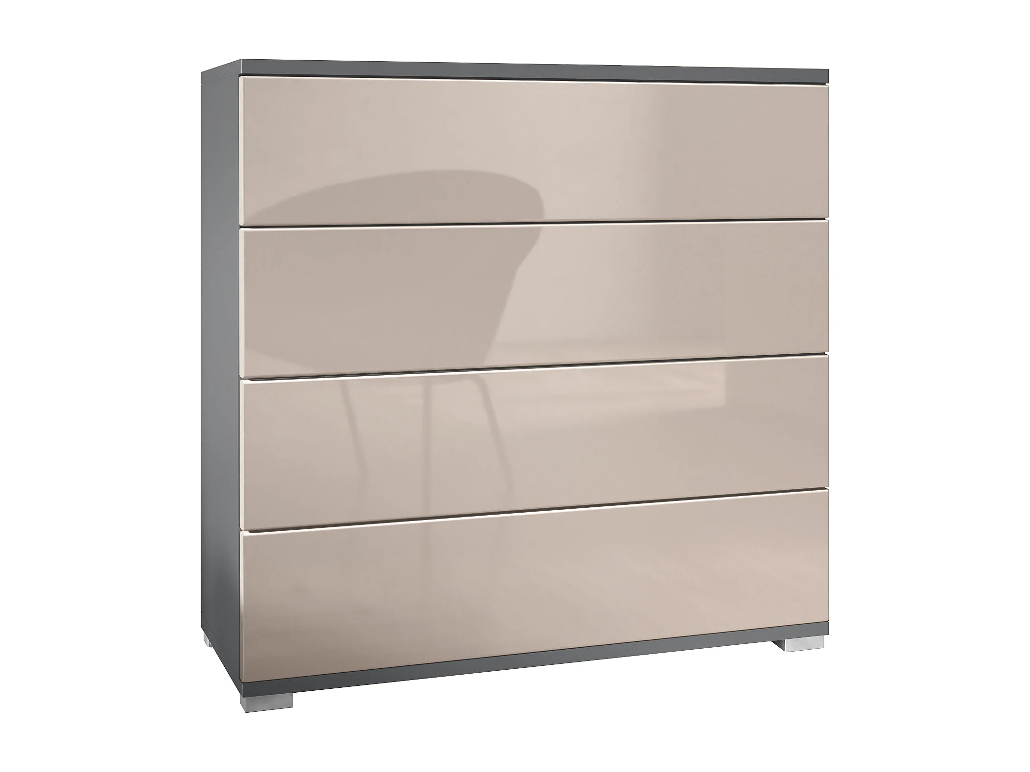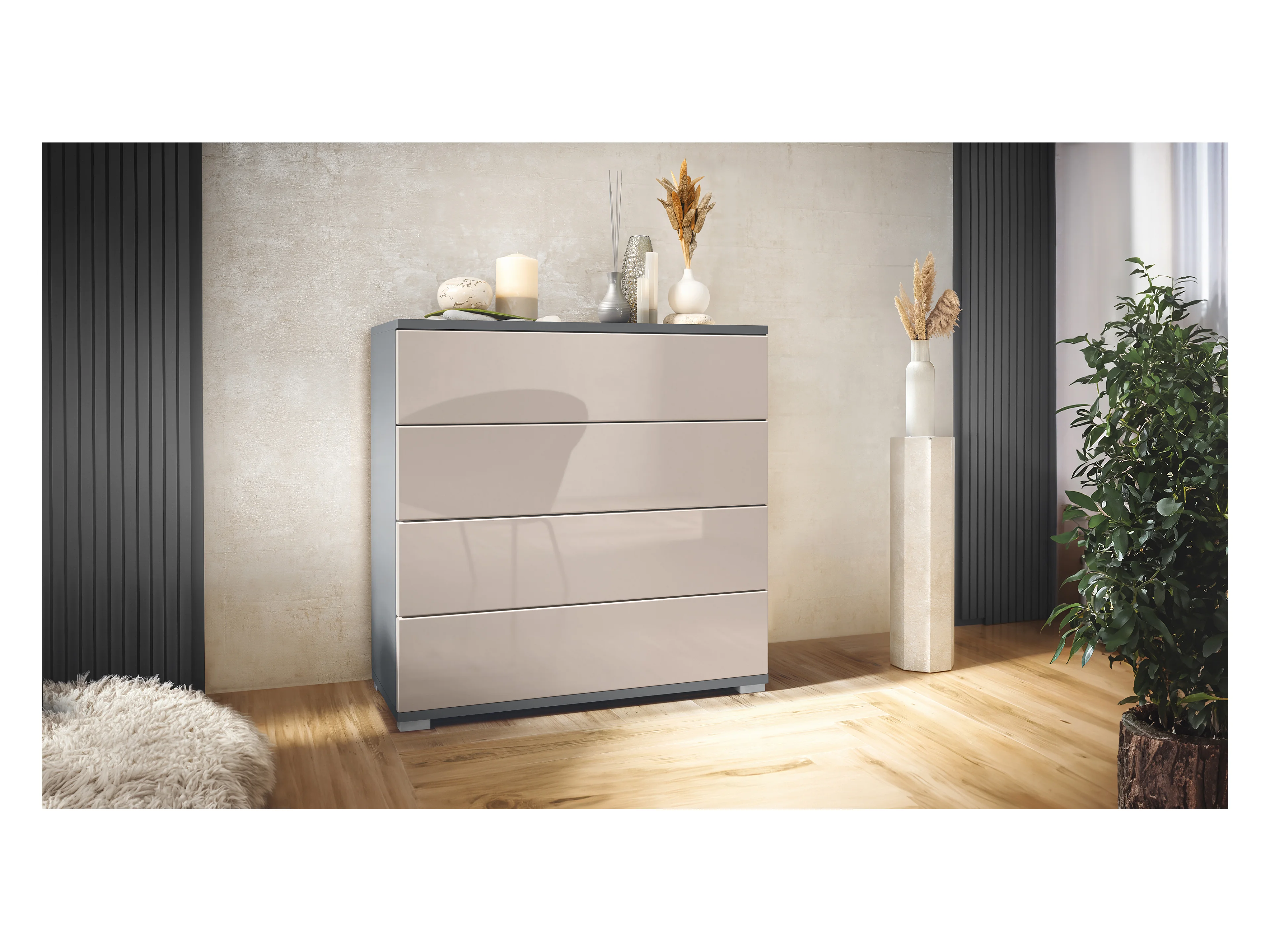 Commode Pavos V3, Buffet avec 4 tiroirs anthracite mat/gris sable haute brillance (76 x 76 x 35 cm)