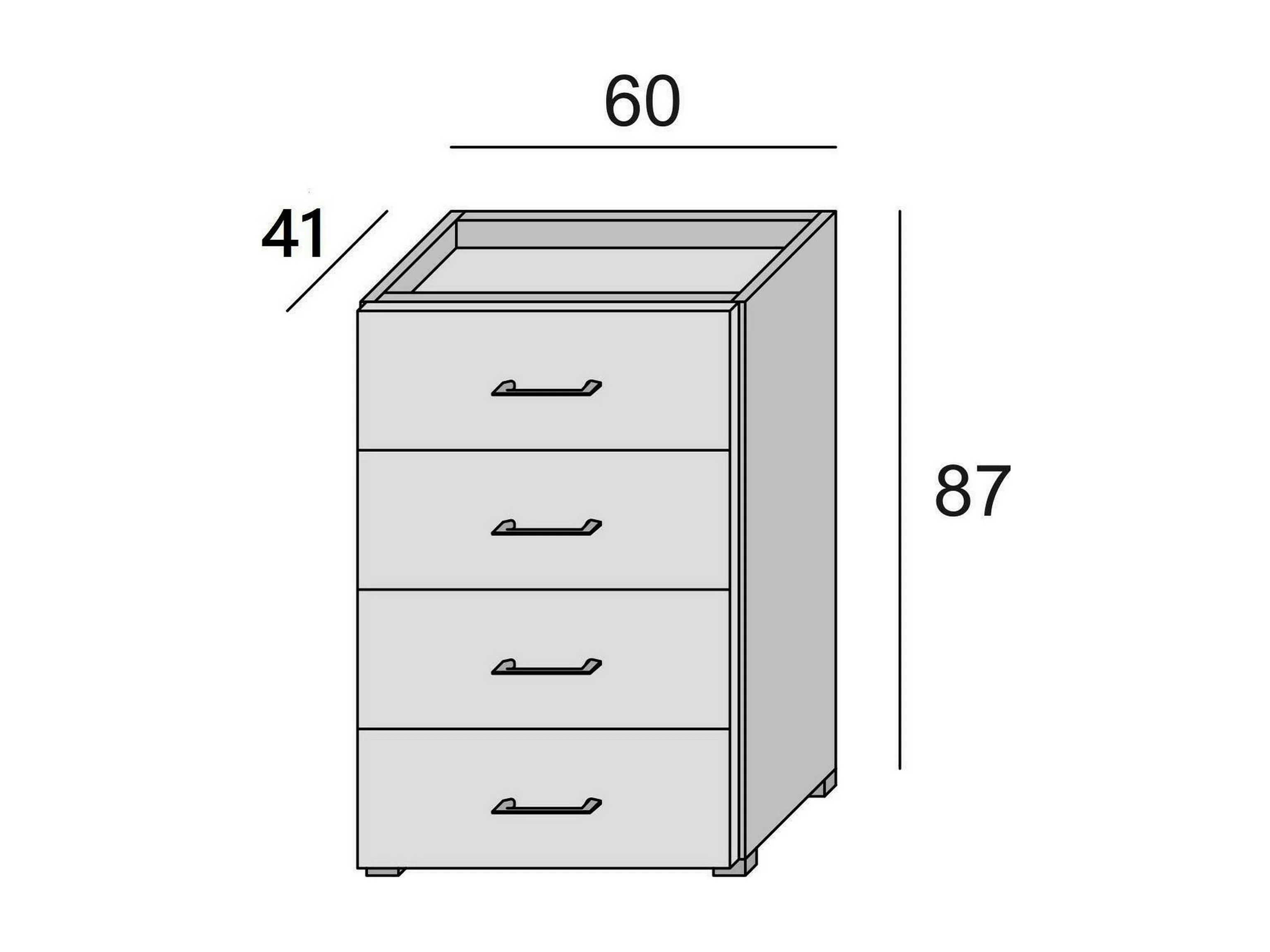 Commode Primula, commode à 4 tiroirs pour la chambre, bureau polyvalent ou meuble d'étude, 60x41h87 cm, blanc