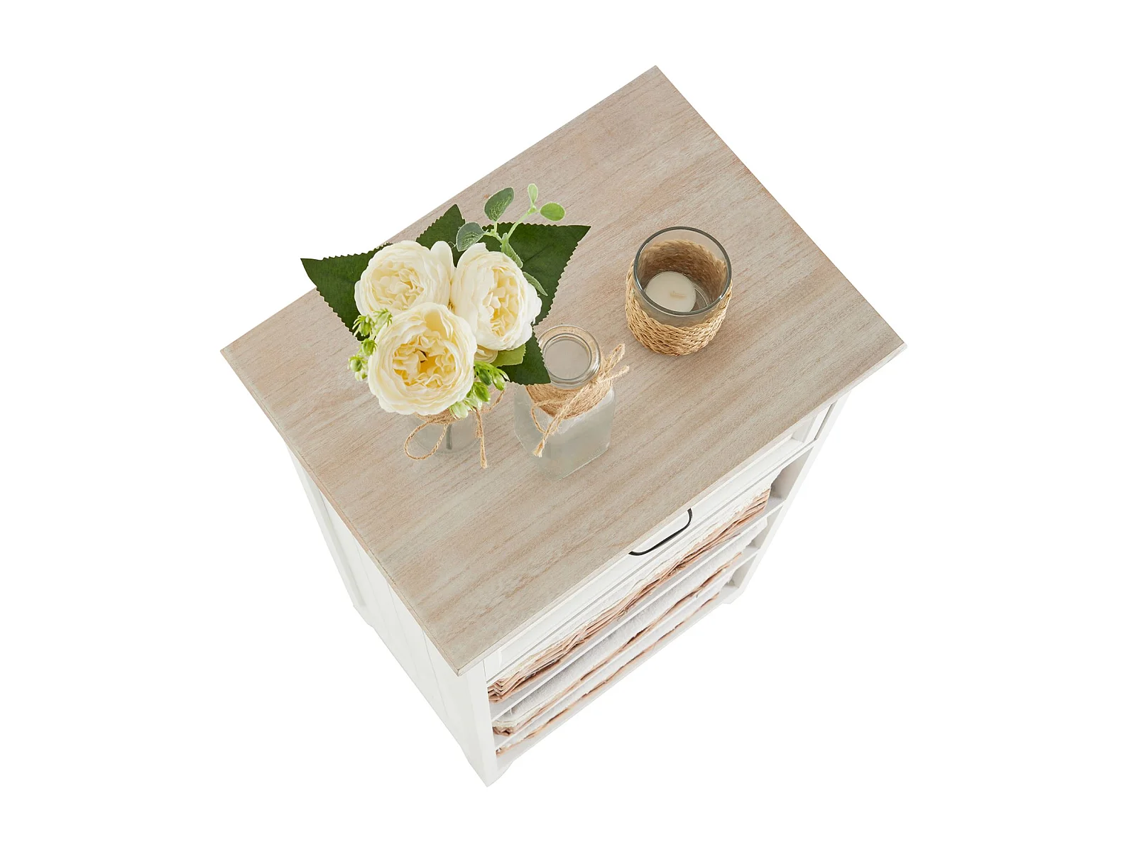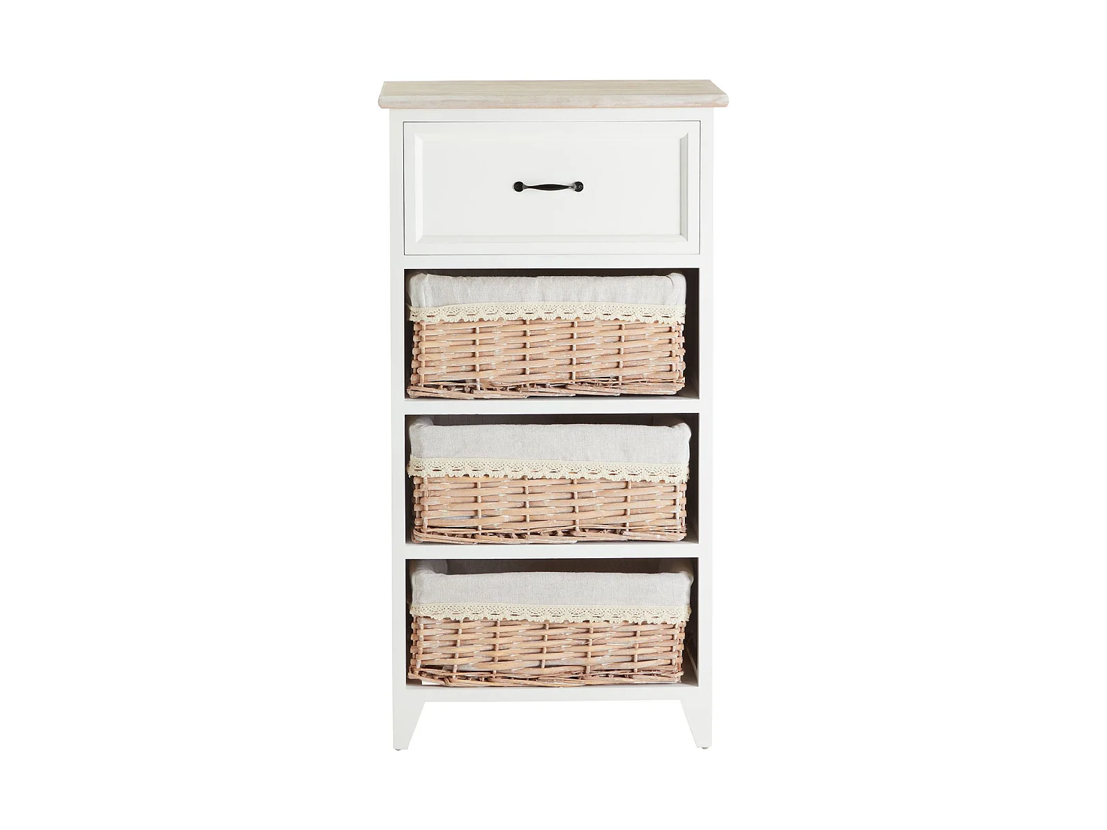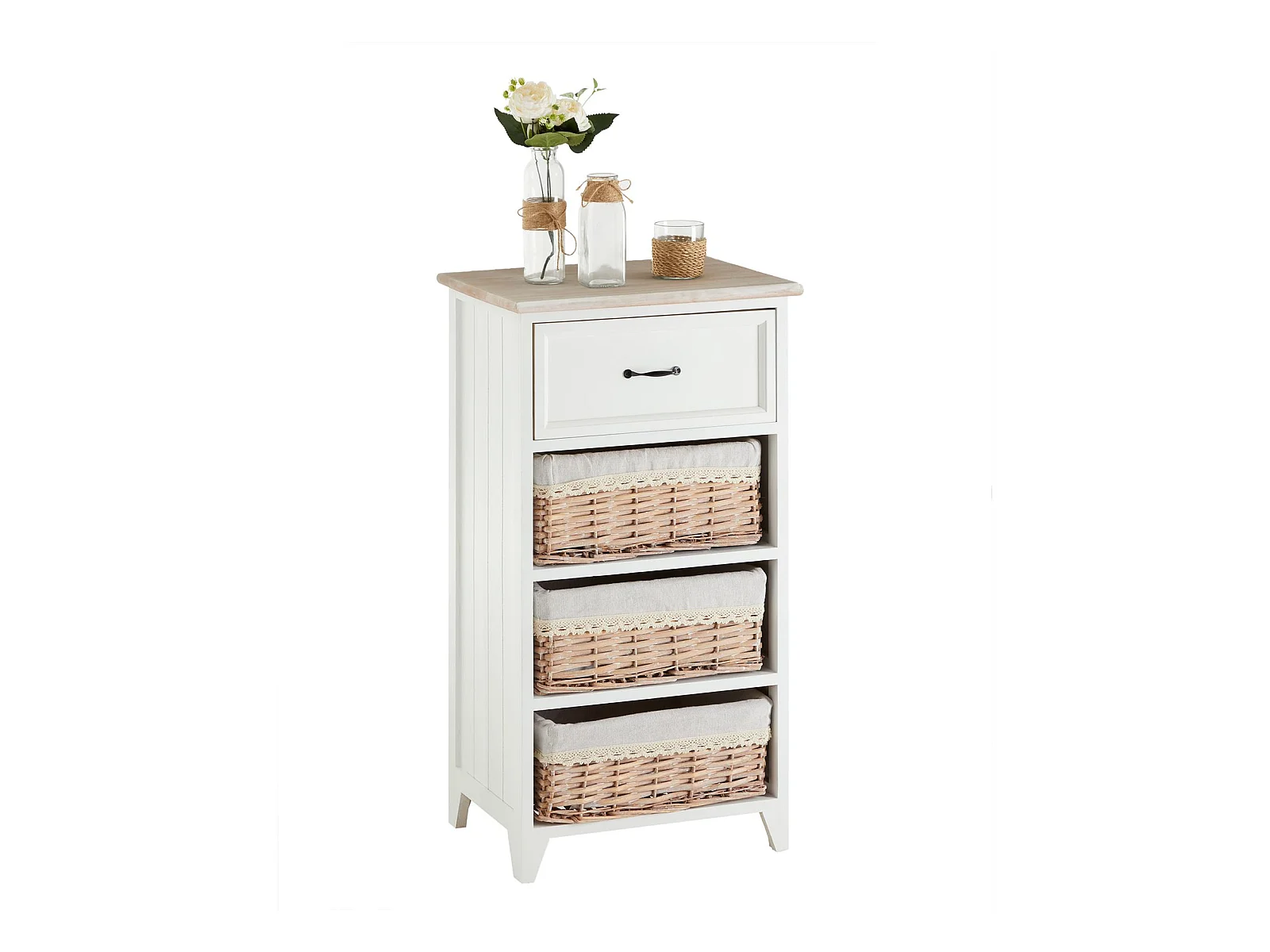Commode PROVENCE rangement 1 tiroir et 3 paniers étagère en bois de paulownia style shabby chic vintage rustique campagnard blanc