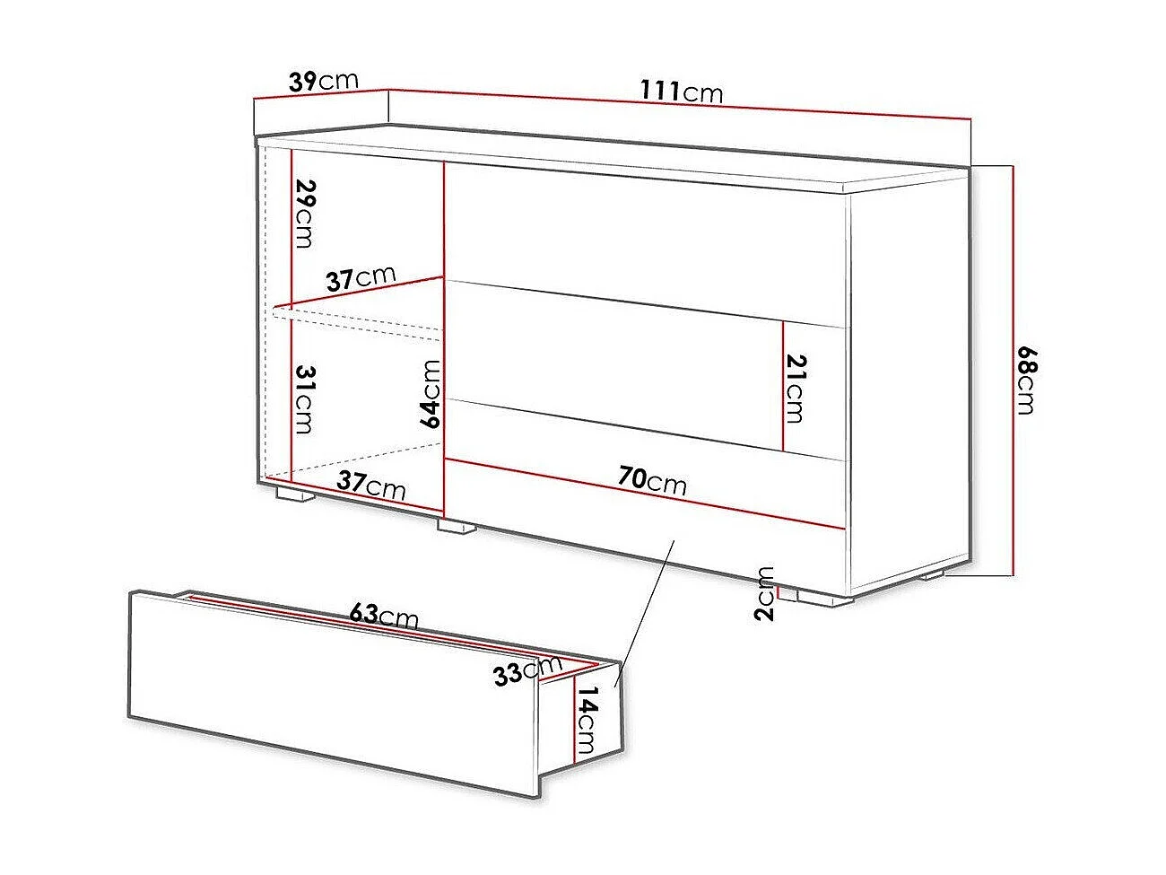 Commode Sarasota 128, Blanc brillant|Blanc, Avec tiroirs et portes, Nombre de tiroirs: 3