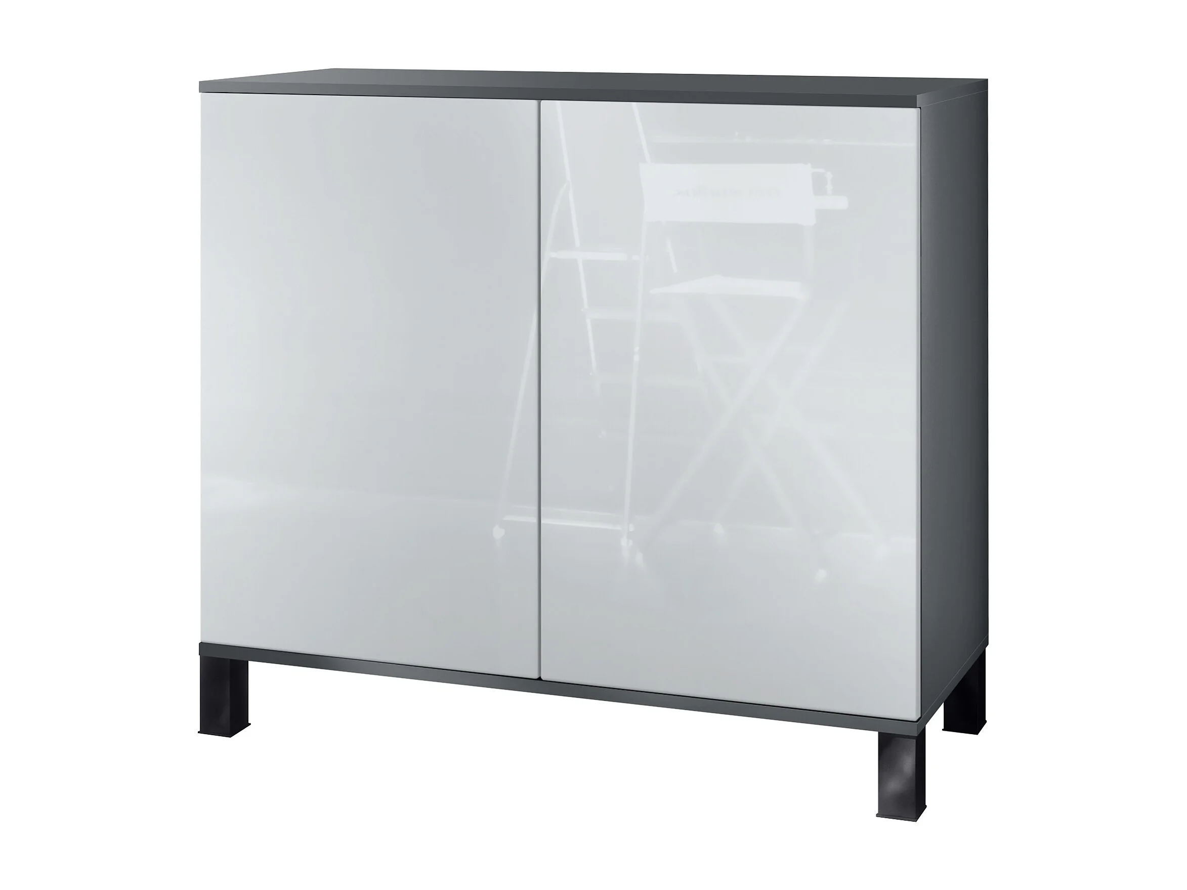 Commode Skadu V3, Buffet de Cuisine Moderne avec 2 Grandes Portes anthracite mat / blanc haute brillance (92,5 x 84.5 x 35)
