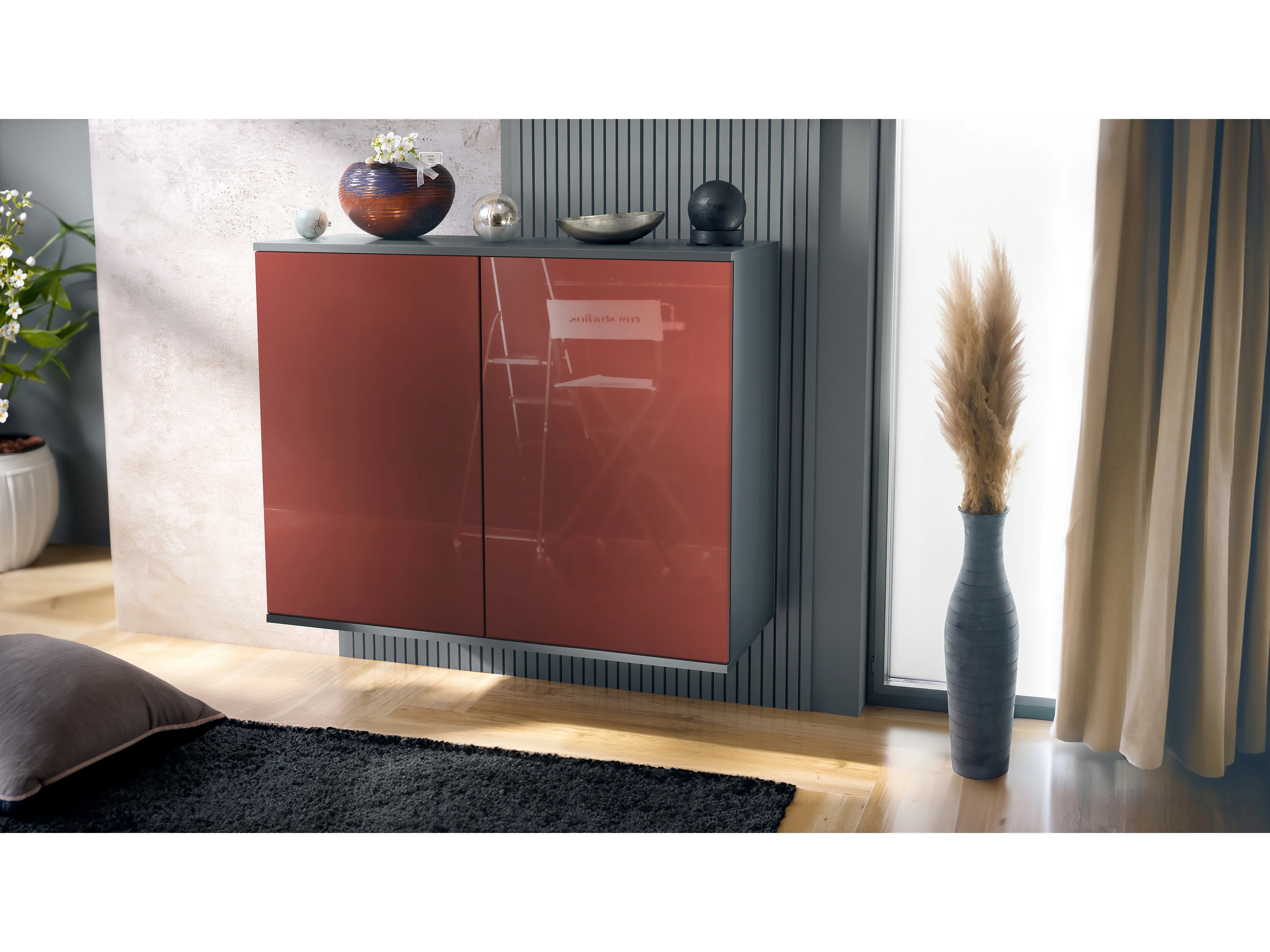 Commode Skadu V3, Buffet de Cuisine Moderne avec 2 Grandes Portes anthracite mat / bordeaux haute brillance (92,5 x 73.5 x 35)