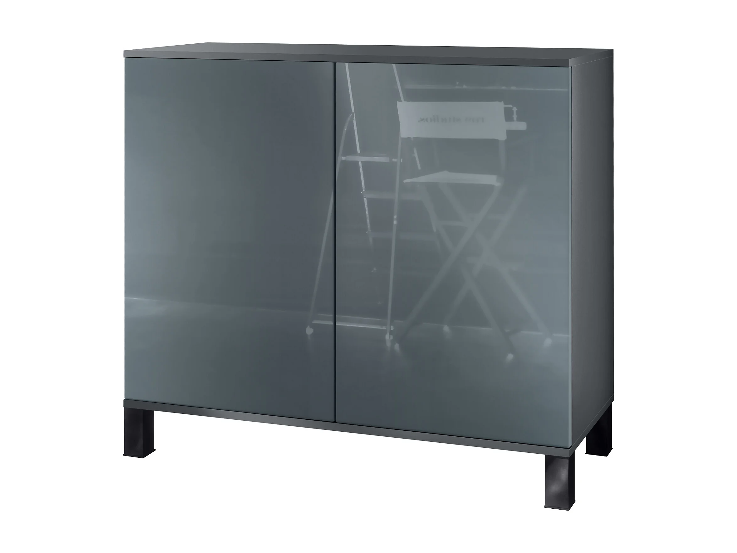 Commode Skadu V3, Buffet de Cuisine Moderne avec 2 Grandes Portes anthracite mat / gris haute brillance (92,5 x 84.5 x 35)