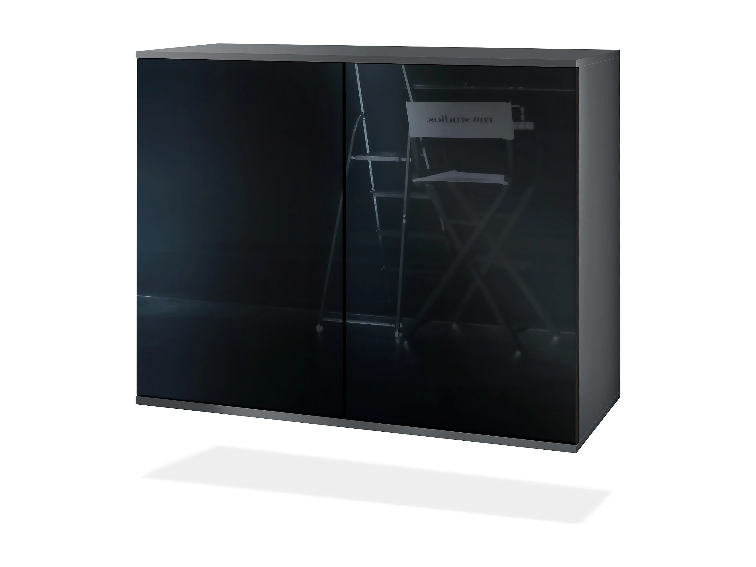 Commode Skadu V3, Buffet de Cuisine Moderne avec 2 Grandes Portes anthracite mat / noir haute brillance (92,5 x 73.5 x 35)