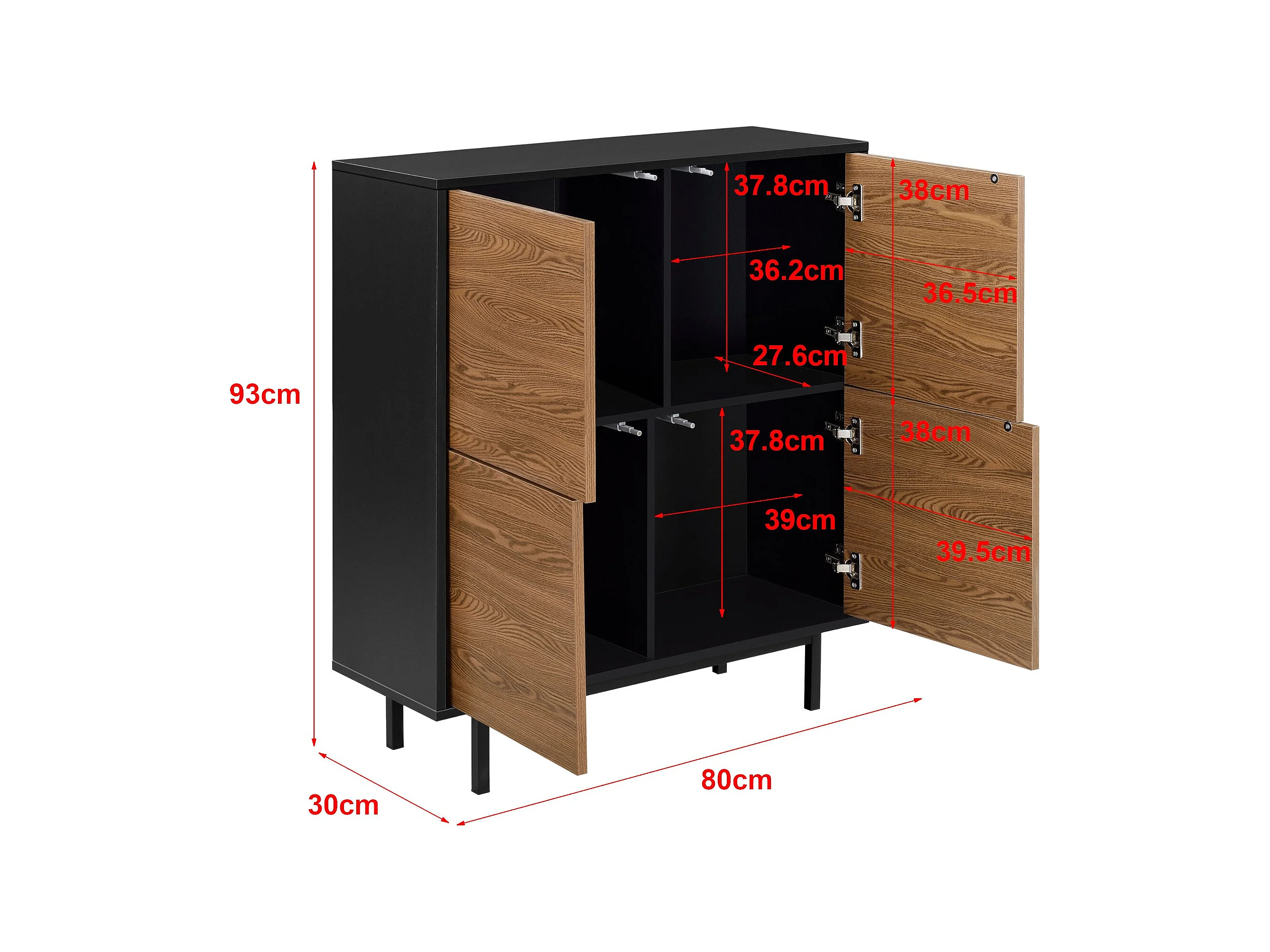 Commode haute à deux portes - 104 cm - noir avec pieds noires - VELLORE