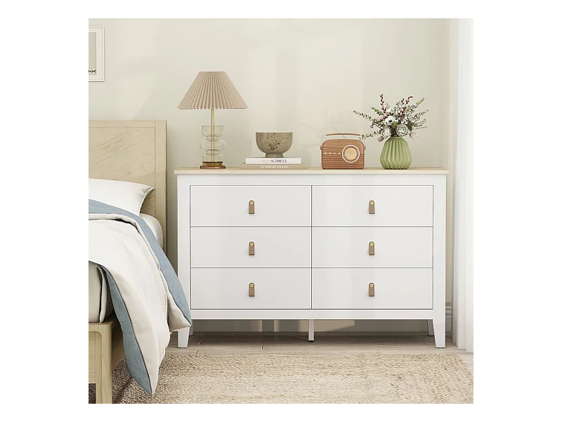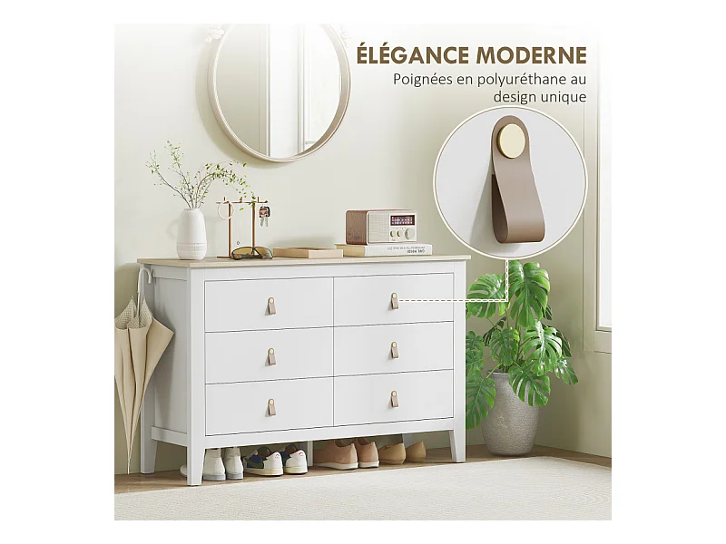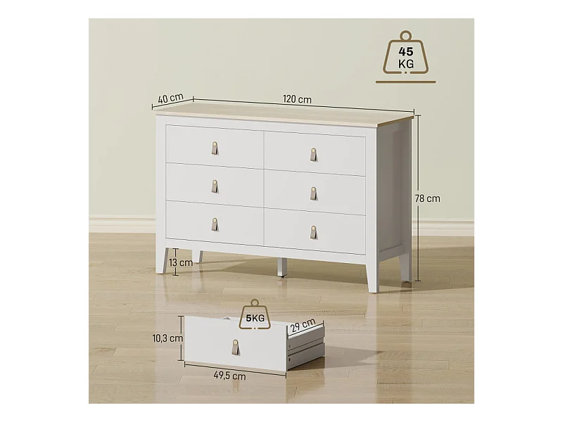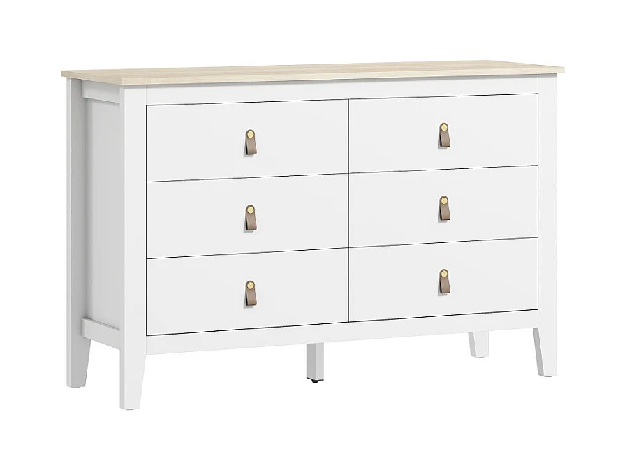 Commode sur pieds 6 tiroirs HUNTER effet bois clair et blanc