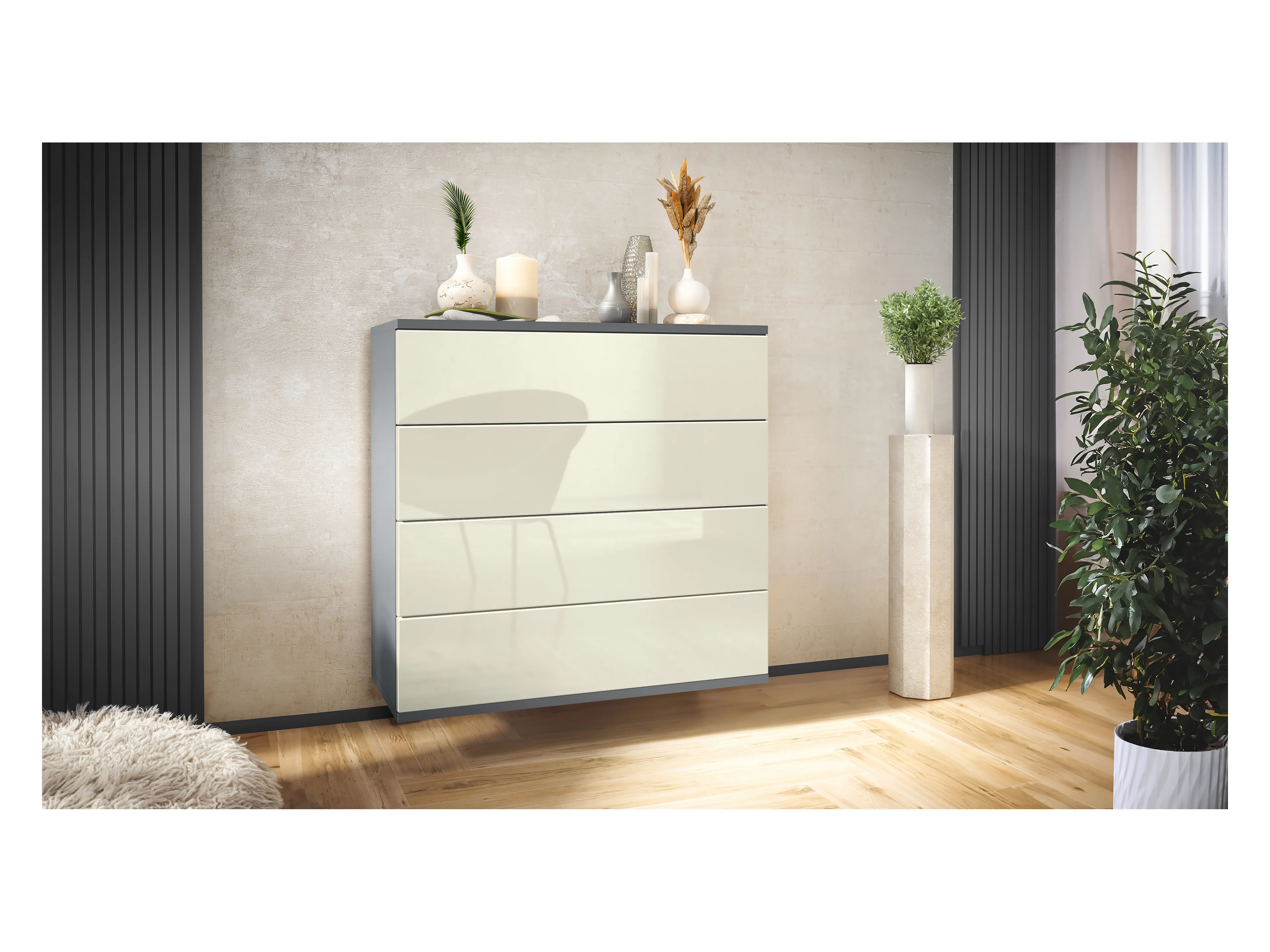 Commode suspendue Pavos V3, Buffet avec 4 tiroirs anthracite mat/crème haute brillance (76 x 76 x 35 cm)