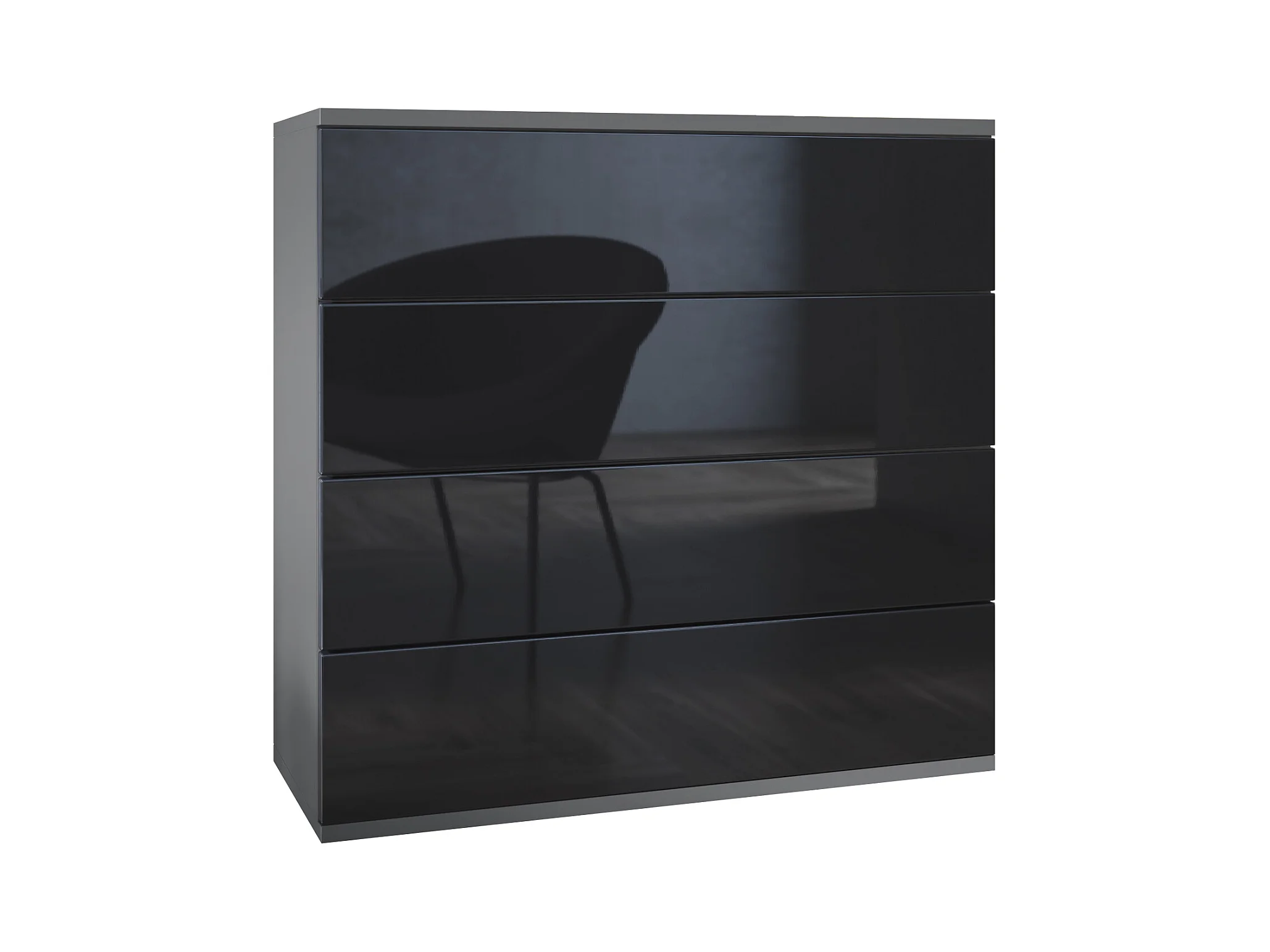 Commode suspendue Pavos V3, Buffet avec 4 tiroirs anthracite mat/noir haute brillance (76 x 76 x 35 cm)