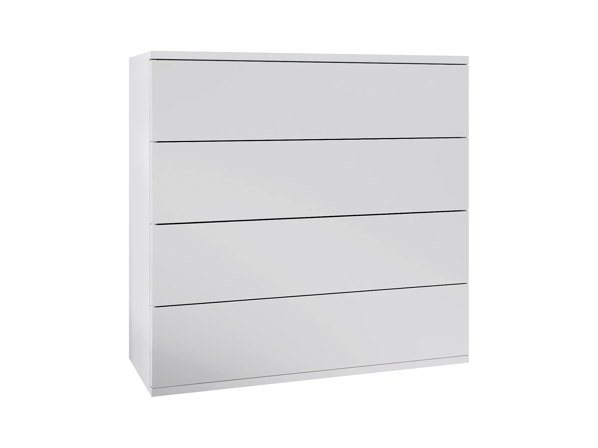 Commode suspendue Pavos V3, Buffet avec 4 tiroirs blanc mat/blanc mat (76 x 76 x 35 cm)