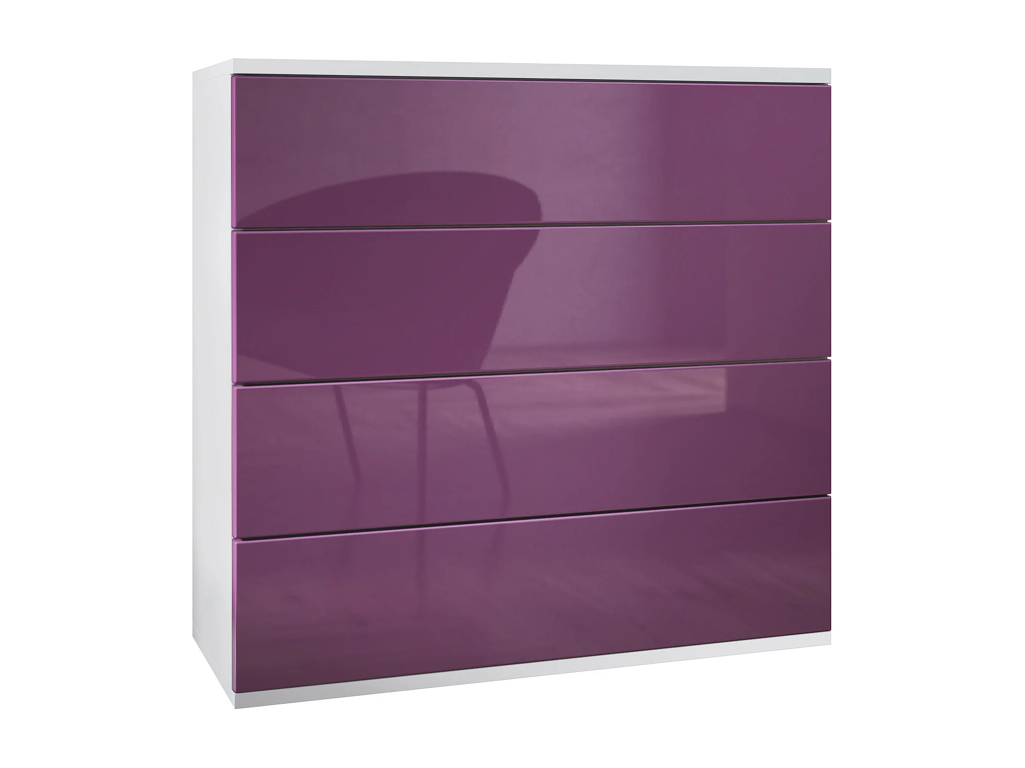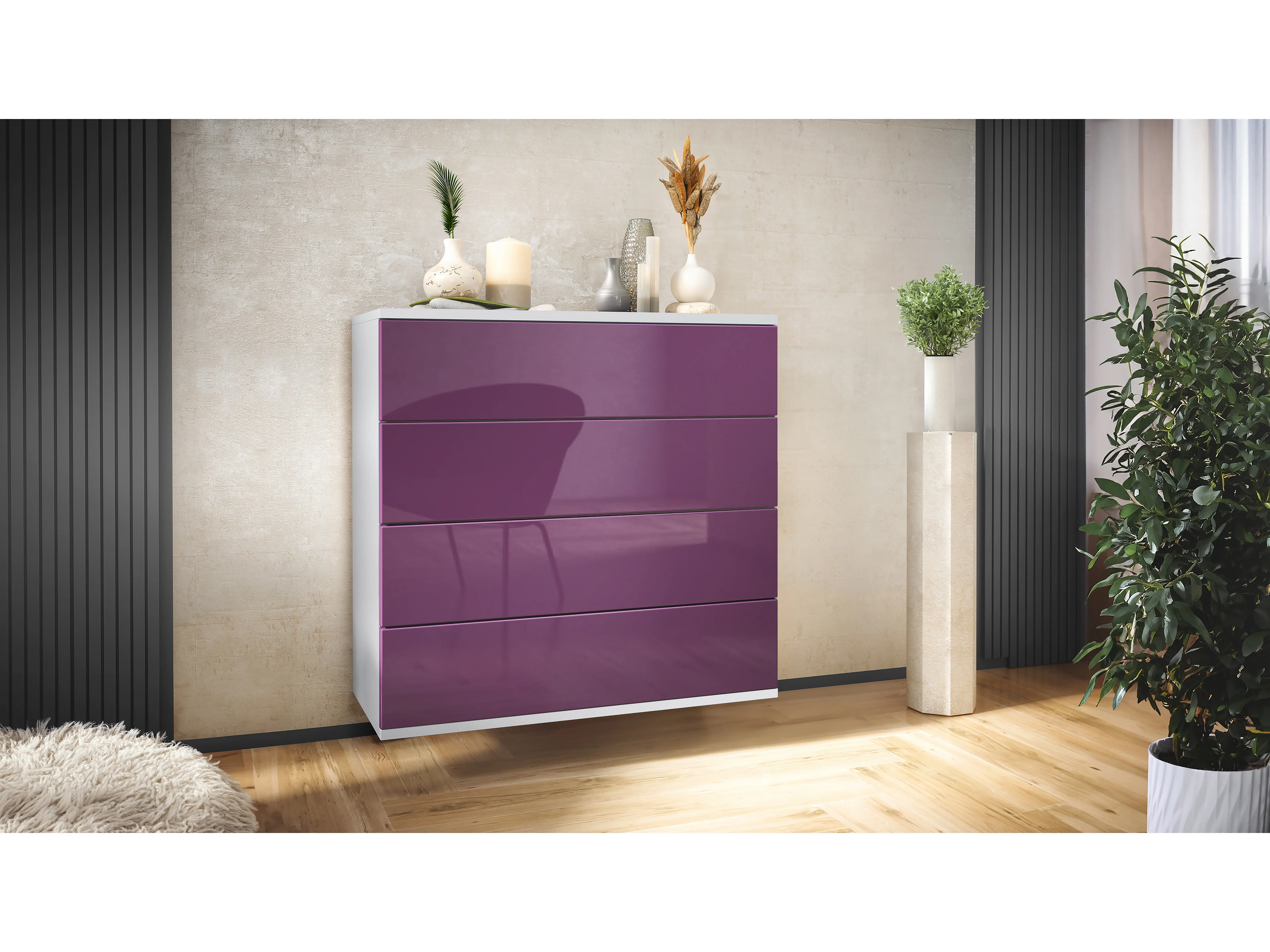 Commode suspendue Pavos V3, Buffet avec 4 tiroirs blanc mat/mûre haute brillance (76 x 76 x 35 cm)
