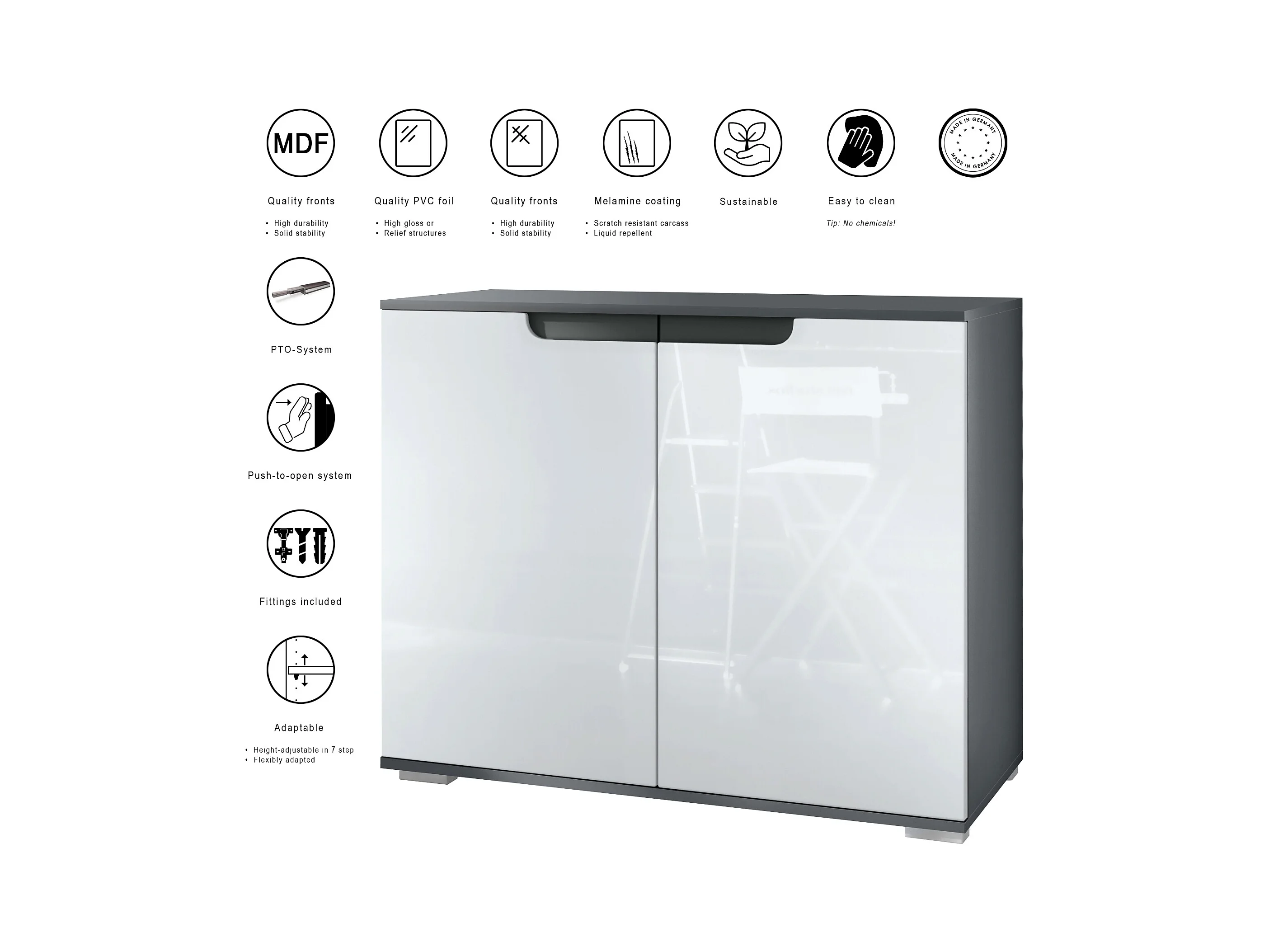 Commode Sylt V3, Buffet de Cuisine Moderne avec 2 Grandes Portes anthracite mat / noir haute brillance (92,5 x 75.5 x 35)