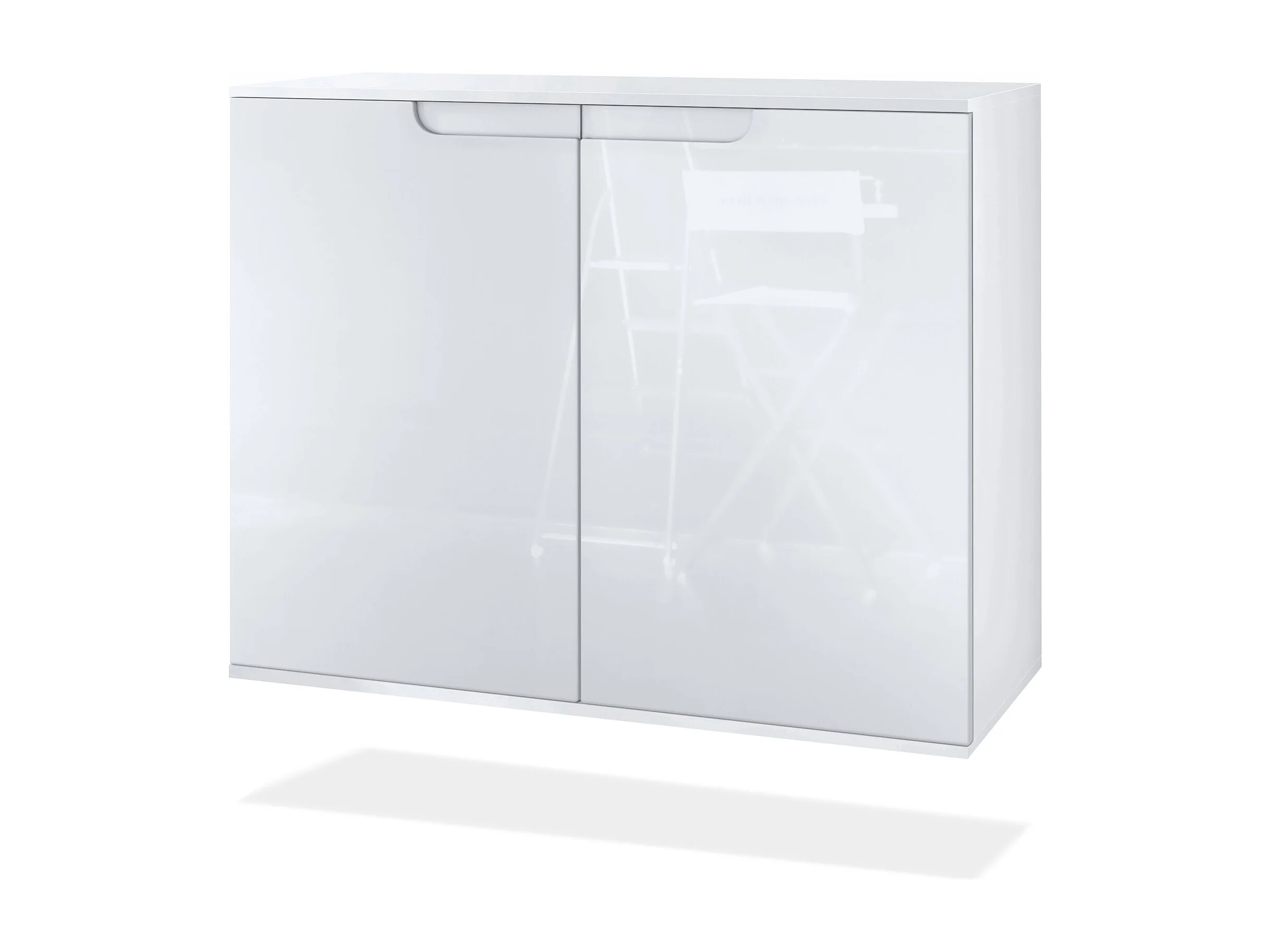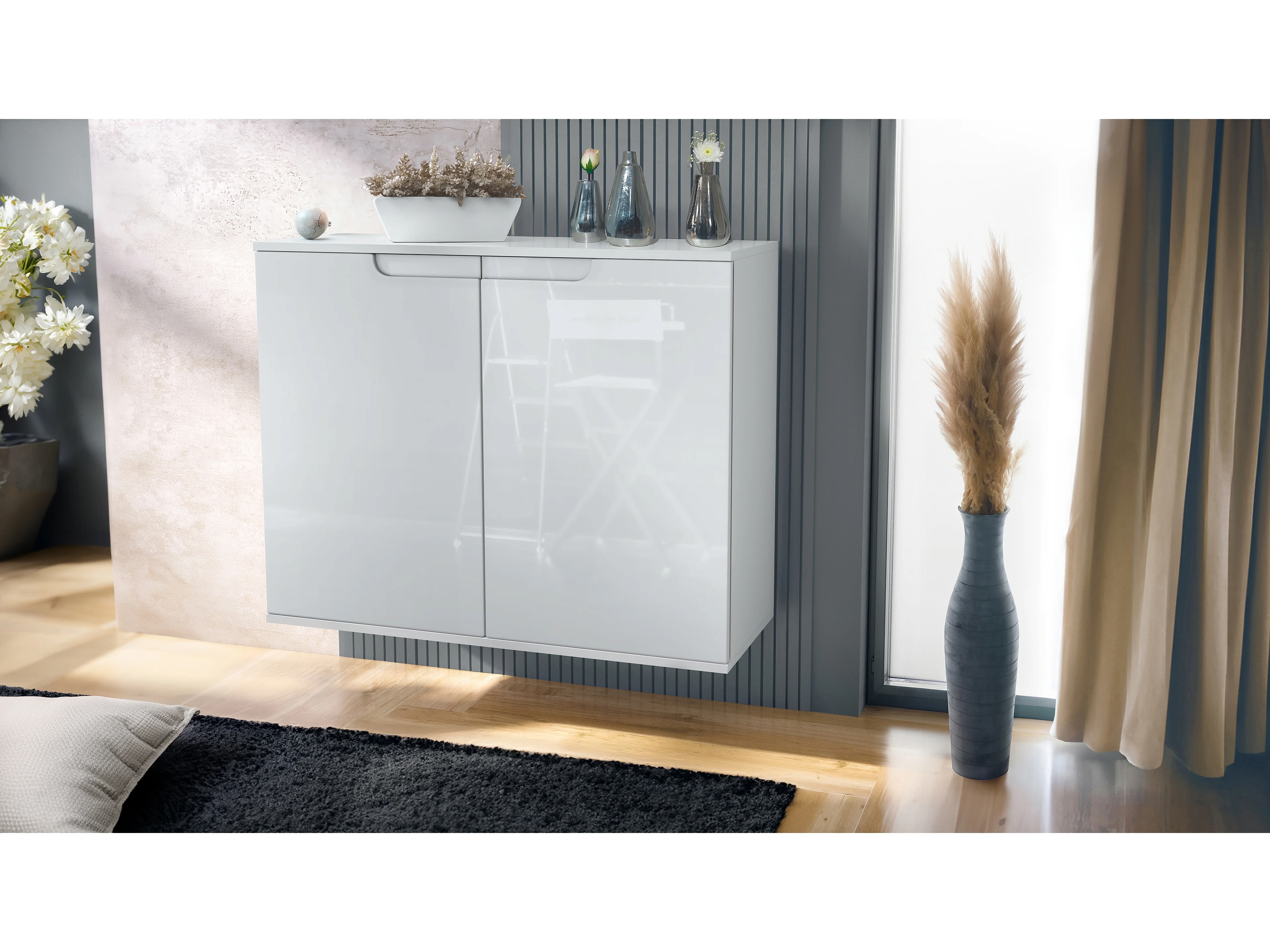 Commode Sylt V3, Buffet de Cuisine Moderne avec 2 Grandes Portes blanc mat / blanc haute brillance (92,5 x 73.5 x 35)