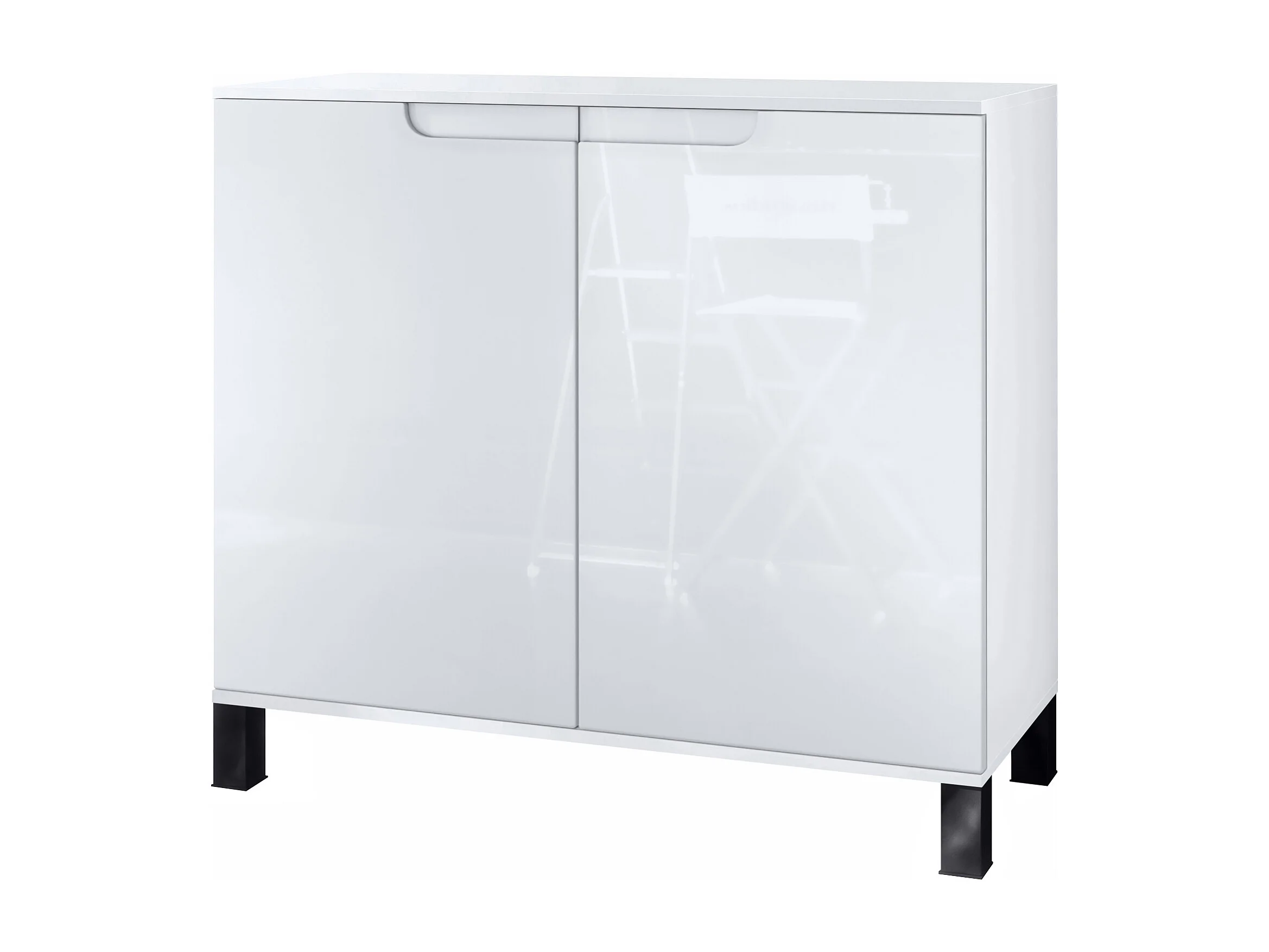 Commode Sylt V3, Buffet de Cuisine Moderne avec 2 Grandes Portes blanc mat / blanc haute brillance (92,5 x 84.5 x 35)