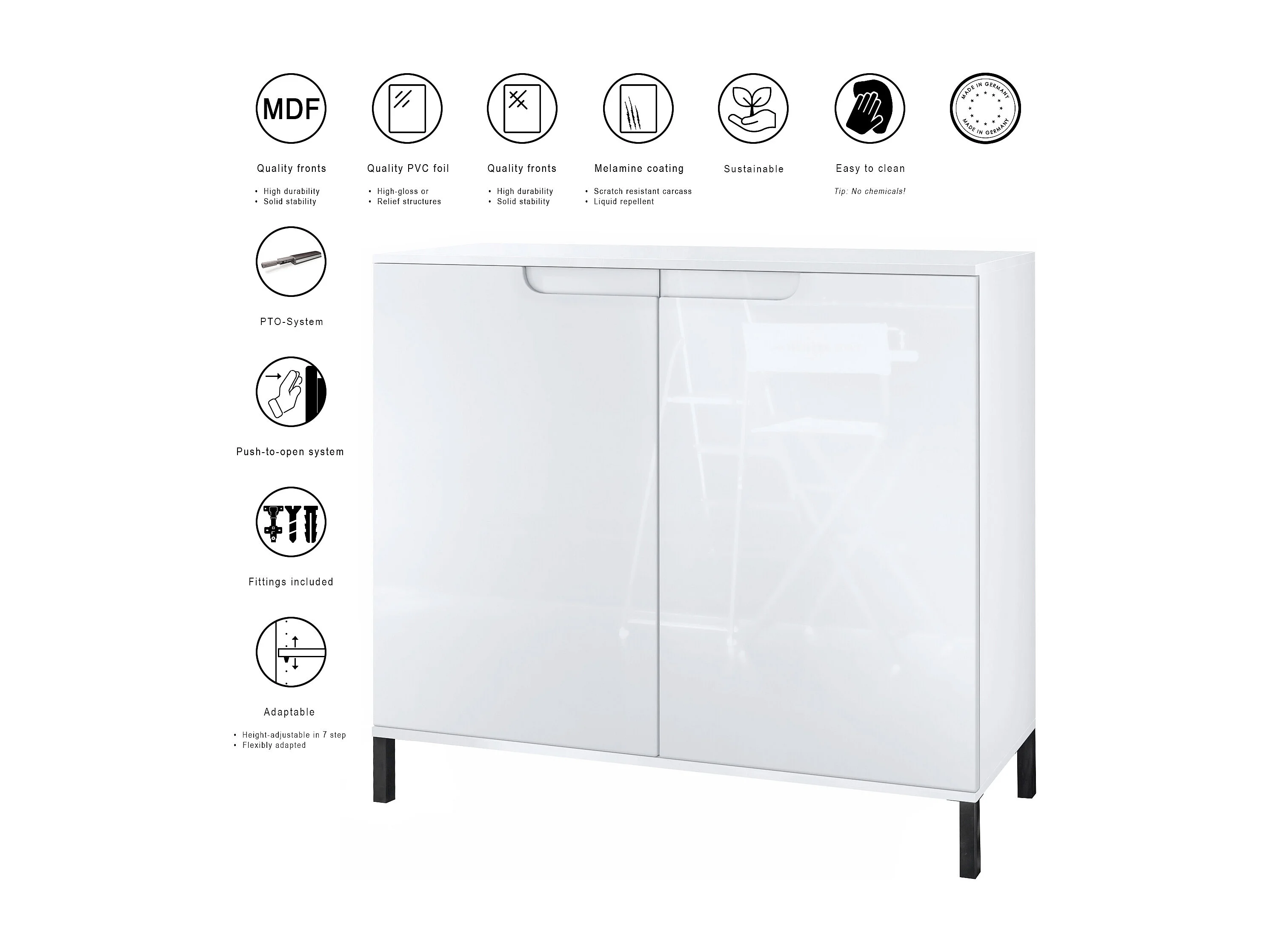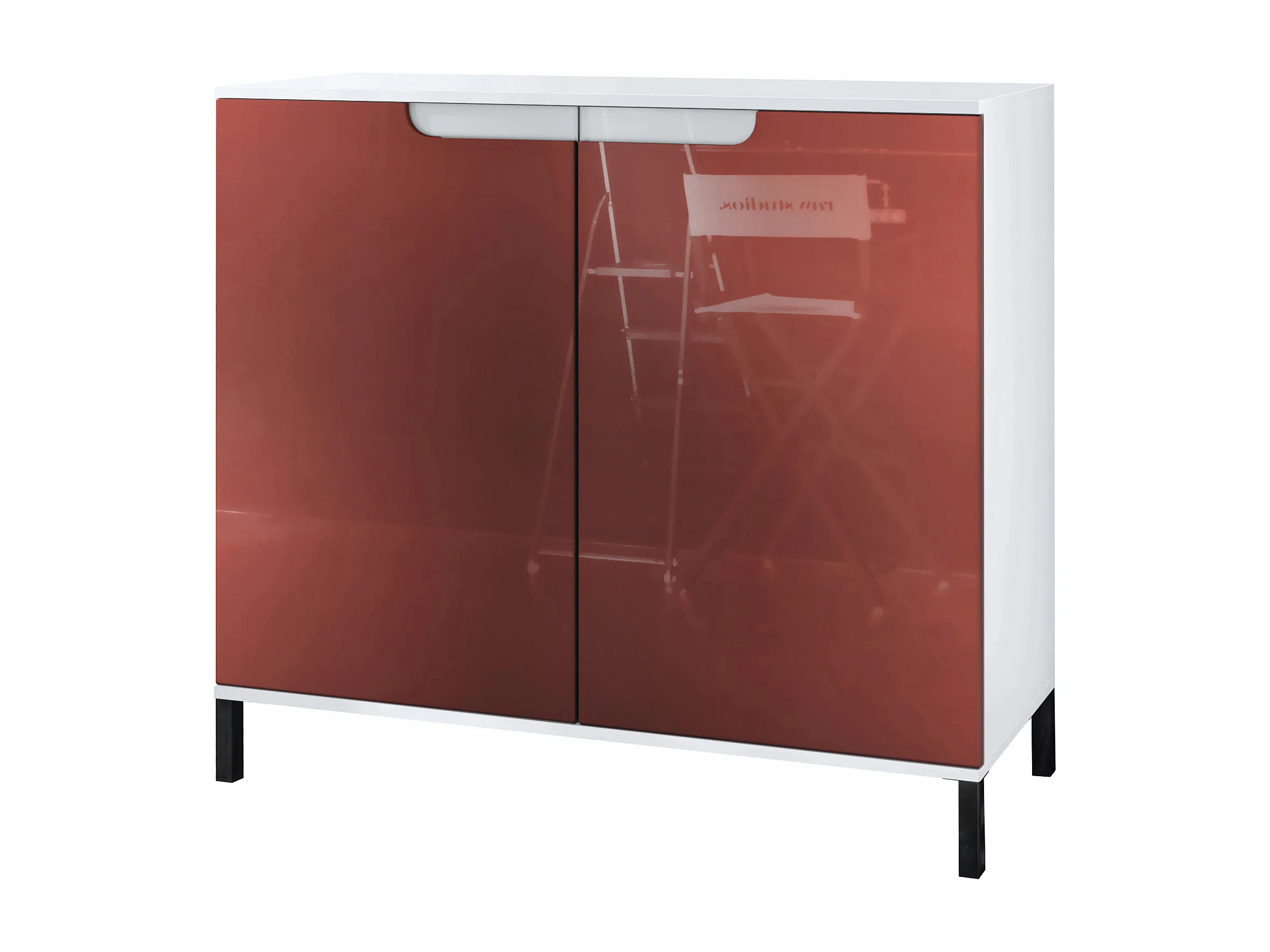 Commode Sylt V3, Buffet de Cuisine Moderne avec 2 Grandes Portes blanc mat / bordeaux haute brillance (92,5 x 83.5 x 35)