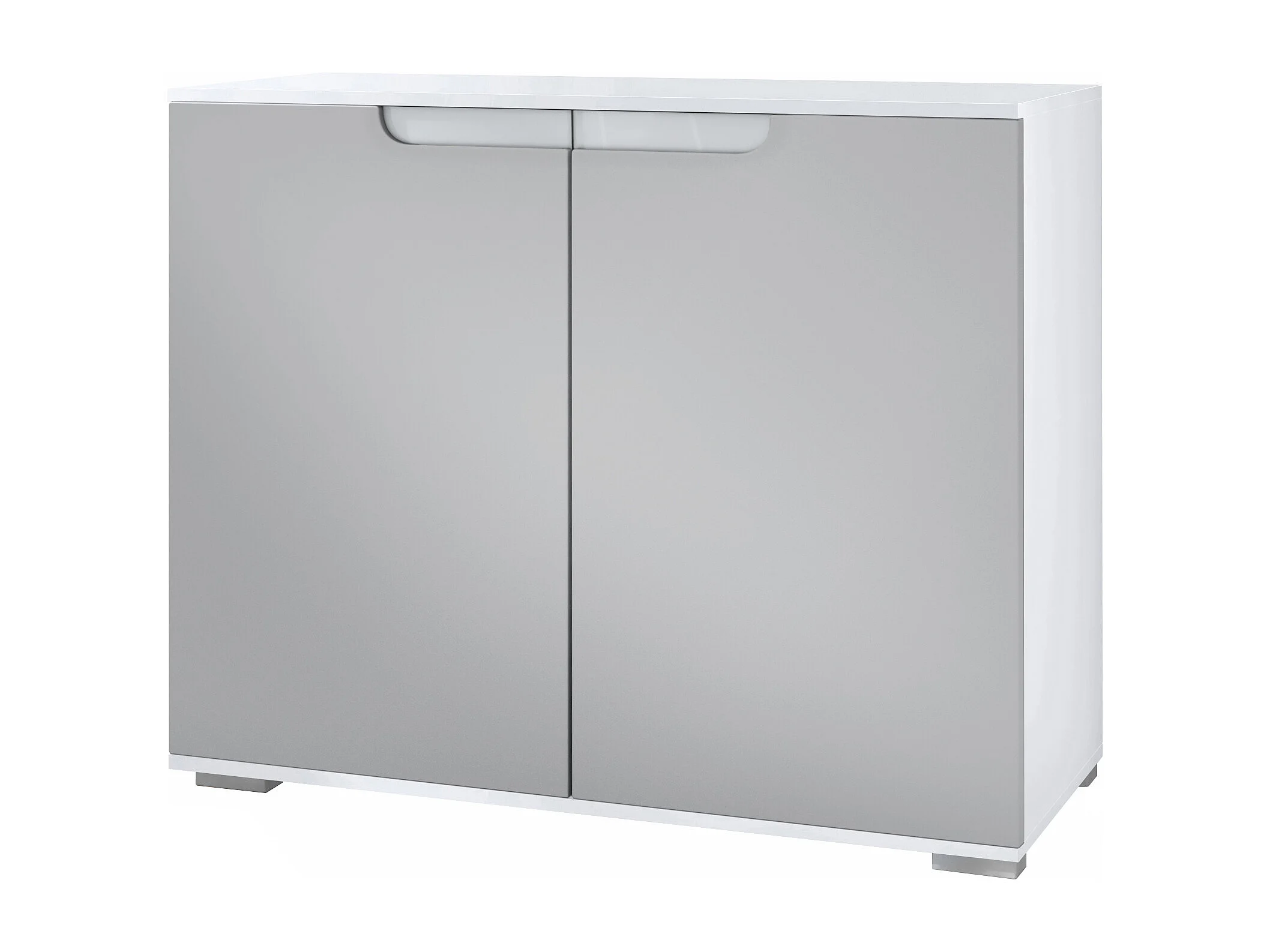 Commode Sylt V3, Buffet de Cuisine Moderne avec 2 Grandes Portes blanc mat / gris clair satiné mat (92,5 x 75.5 x 35)